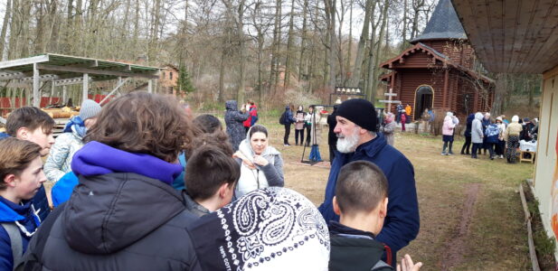28 апреля 2022 года в пос. Можайский Дудергофе, на территории прихода храма святой равноапостольной княгини Ольги состоялись Пасхальные встречи учащихся, их родителей и учителей школы-интерната №289 Красносельского района с настоятелем храма протоиереем Михаилом Подолеем, священнослужителями иереем Константином Подолеем и диаконом Эмануилом Кричфалуший.