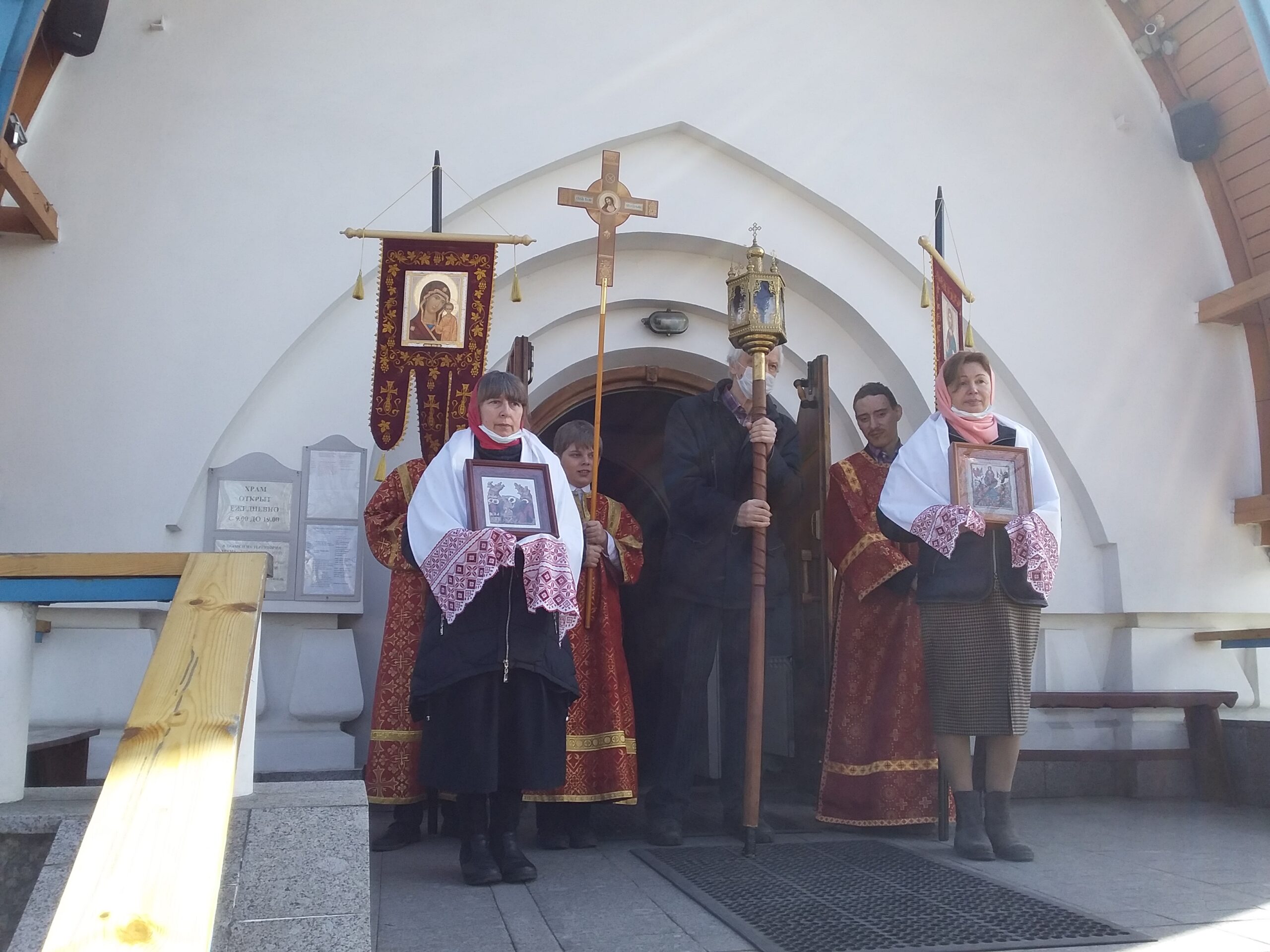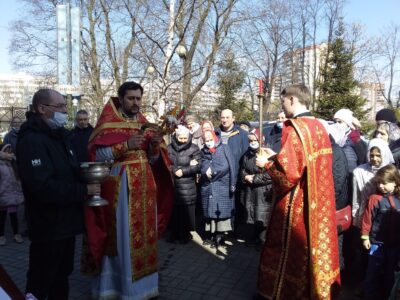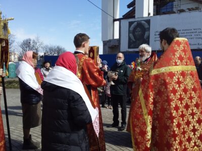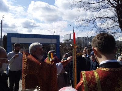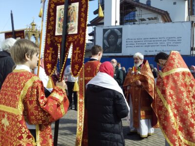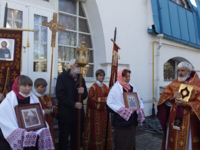Божественную литургию в храме святого праведного Иоанна Кронштадтского на Кронштадтской площади совершил настоятель храма протоиерей Михаил Подолей в сослужении клира. После Литургии был совершен Крестный ход.