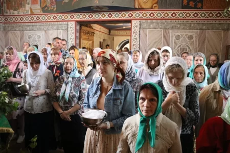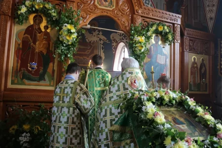 Праздник Пятидесятницы, или день Святой Троицы, проходил так. В десятый день по Вознесении Господа Иисуса Христа, в день иудейского праздника первой жатвы, когда ученики и с ними Дева Мария находились в Сионской горнице, в третий час дня в воздухе послышался сильный шум, как во время бури. В воздухе появились яркие трепещущие языки огня. Это был огонь не вещественный – он был одной природы с благодатным огнем, который ежегодно сходит в Иерусалиме на Пасху, он светил, не обжигая. Носясь над головами апостолов, языки огня опустились на них и опочили. Тут же, вместе с внешним явлением произошло и внутреннее, совершившееся в душах: «исполнишася вси Духа Свята». И Богоматерь, и апостолы ощутили в тот миг необыкновенную силу, действующую в них. Просто и непосредственно им был дан свыше новый благодатный дар глагола – они заговорили на языках, которых не знали прежде. Это было дарование, необходимое для проповеди Евангелия по всему миру.