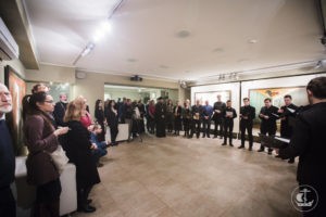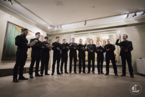 Официальная часть вечера завершилась выступлением молодежного хора «Согласие» с репертуаром церковных и светских музыкальных произведений, а после, под аккомпанемент рояля, гости стали подробнее знакомиться с картинами Максима Бови. Сам автор отвечал на возникающие вопросы и рассказывал о смыслах, заложенных им в эти произведения живописного искусства.