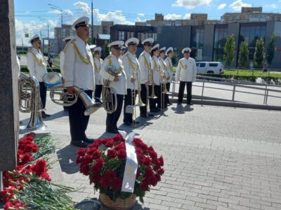 По завершении официальной части была объявлена минута молчания. После прохождения роты почетного караула были возложены цветы к мемориалу.