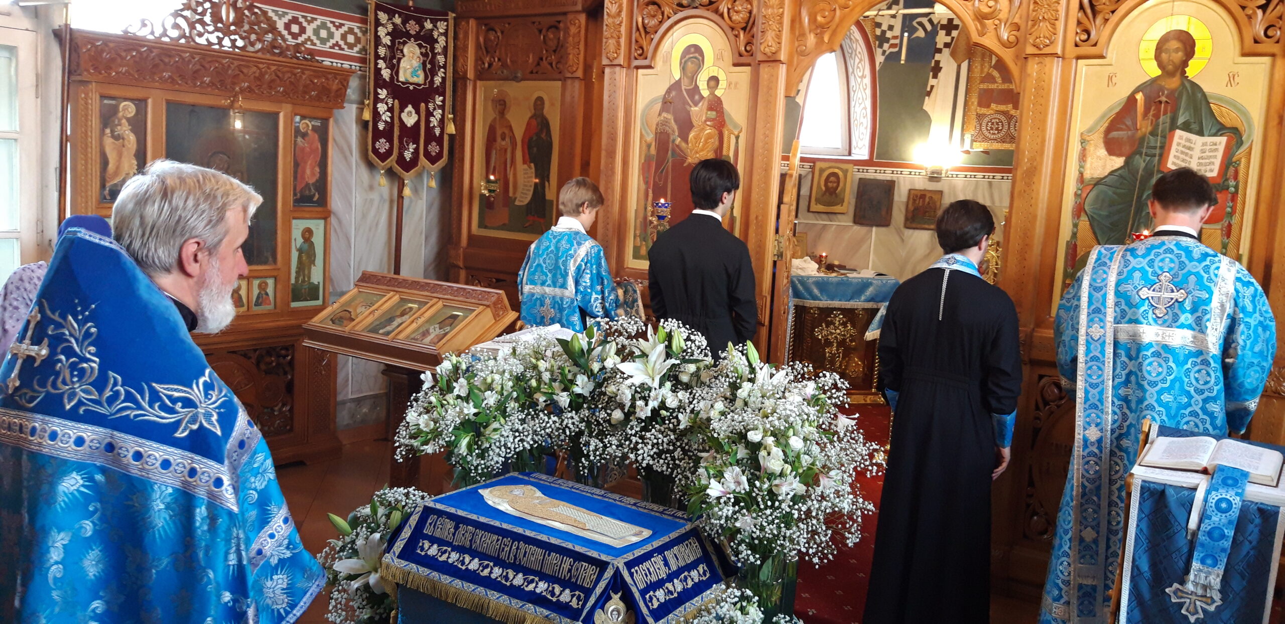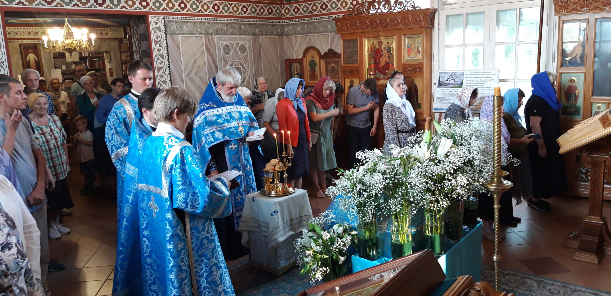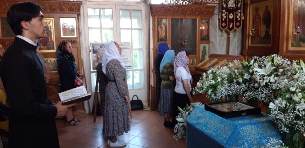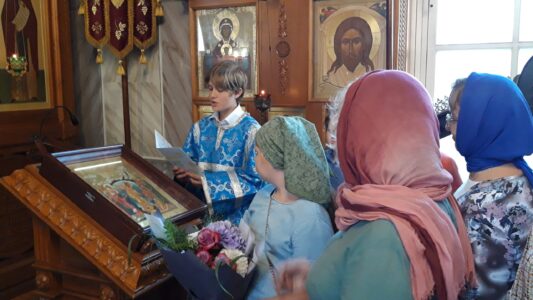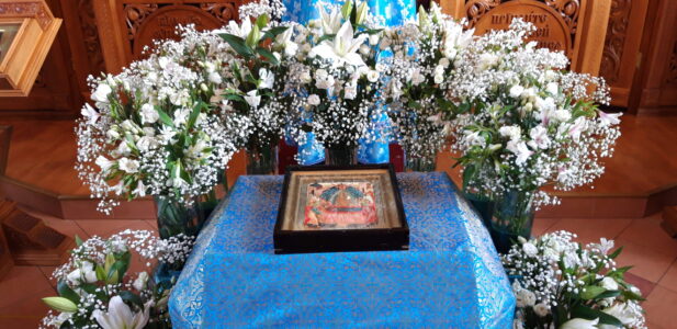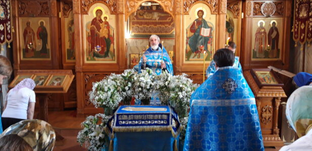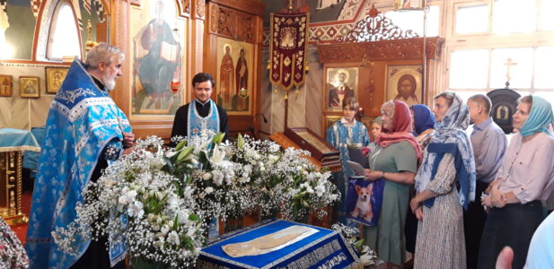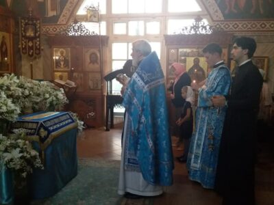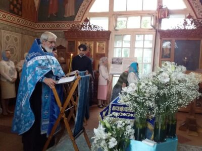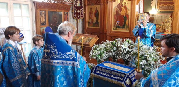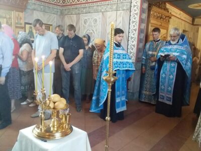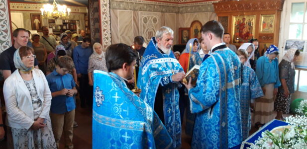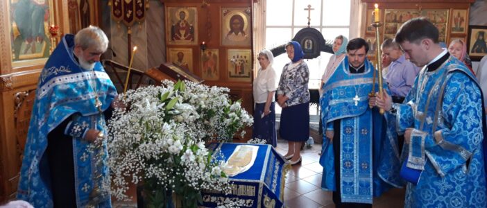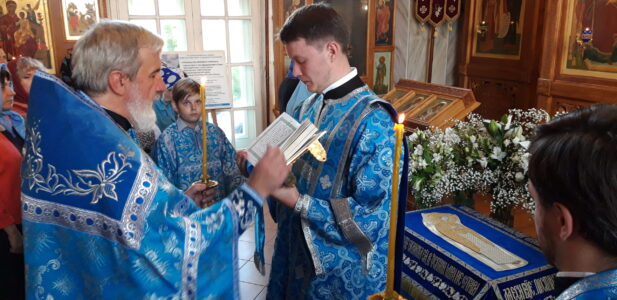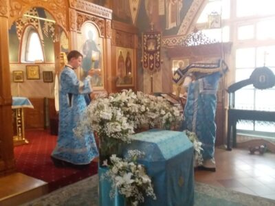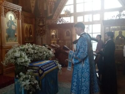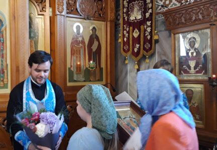 Всенощное бдение накануне вечером и Божественную литургию в этот праздничный день в храме святого праведного Иоанна Кронштадтского на Кронштадтской площади совершил настоятель храма протоиерей Михаил Подолей в сослужении клира.