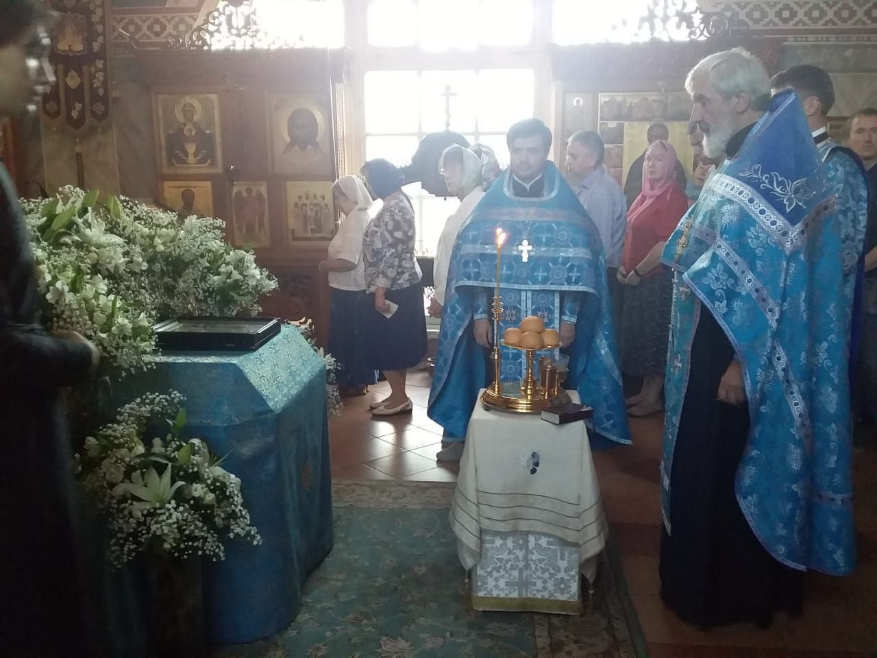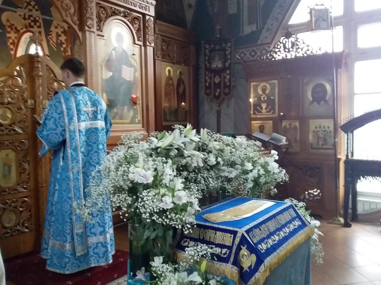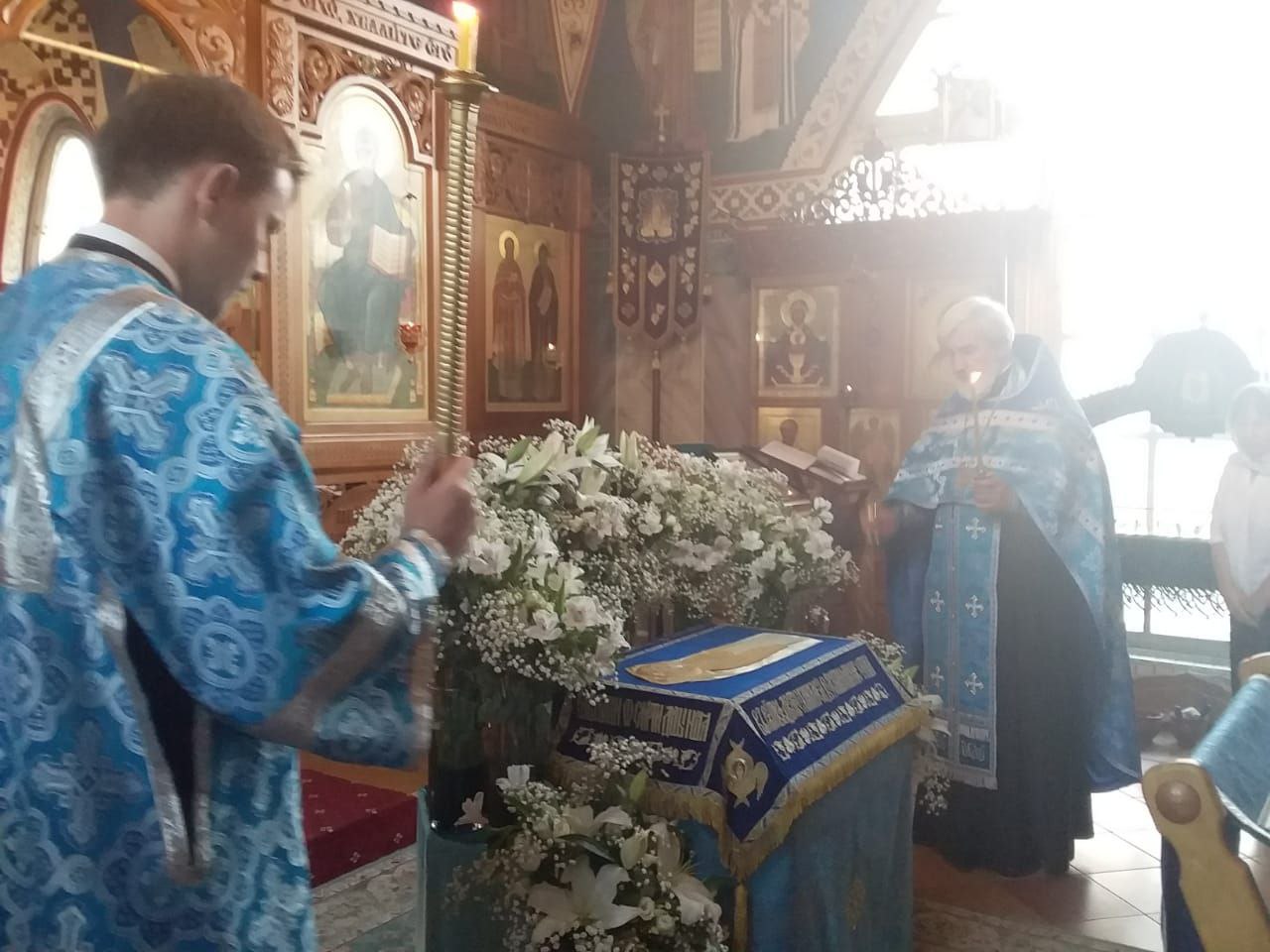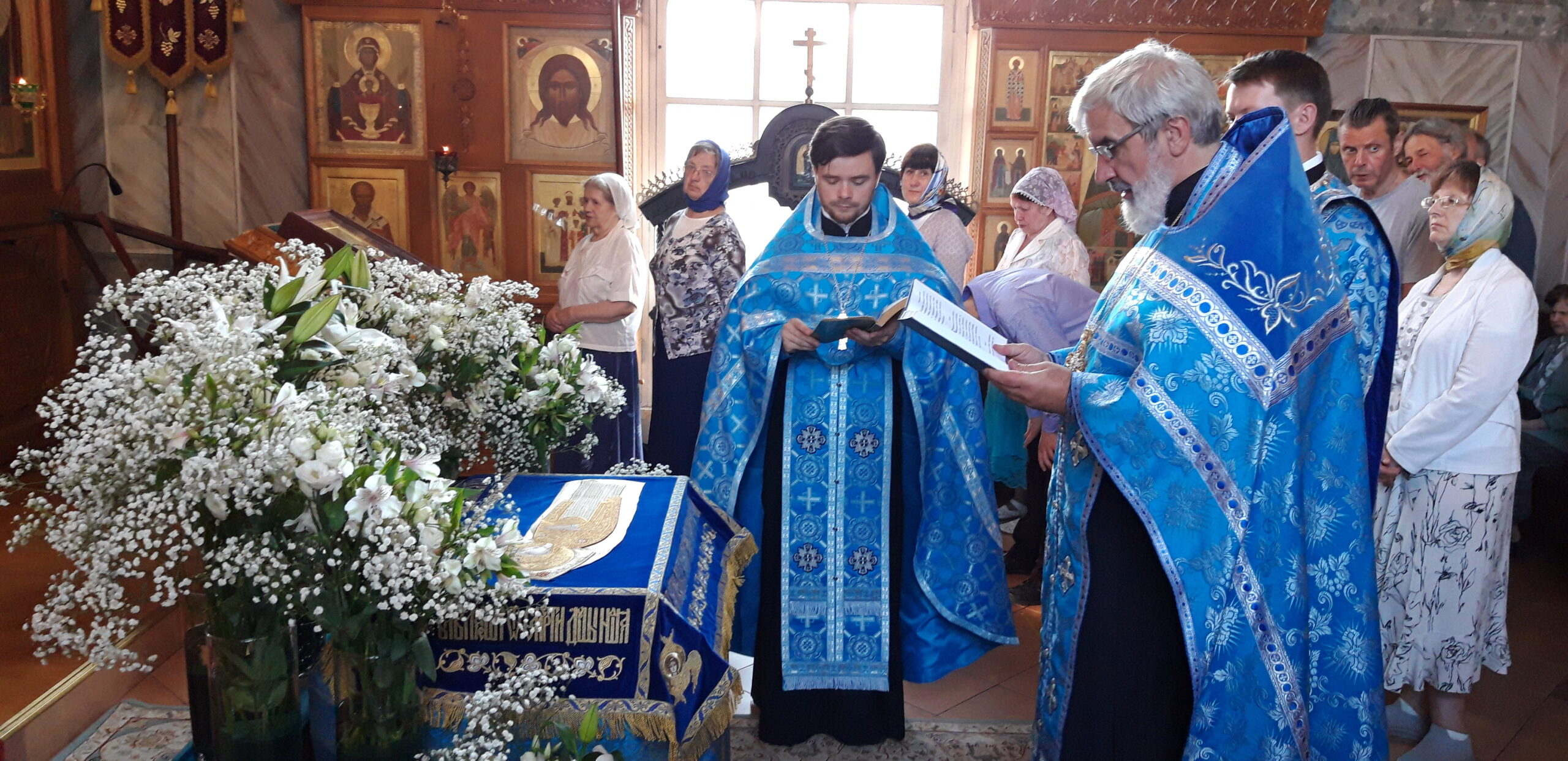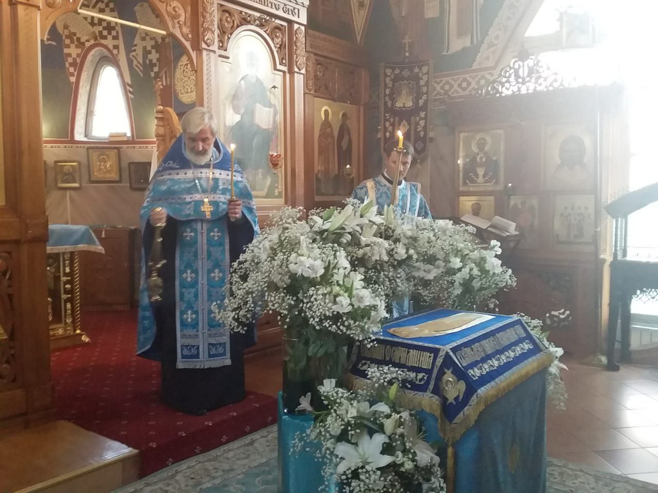 Всенощное бдение накануне вечером и Божественную литургию в этот праздничный день в храме святого праведного Иоанна Кронштадтского на Кронштадтской площади совершил настоятель храма протоиерей Михаил Подолей в сослужении клира.