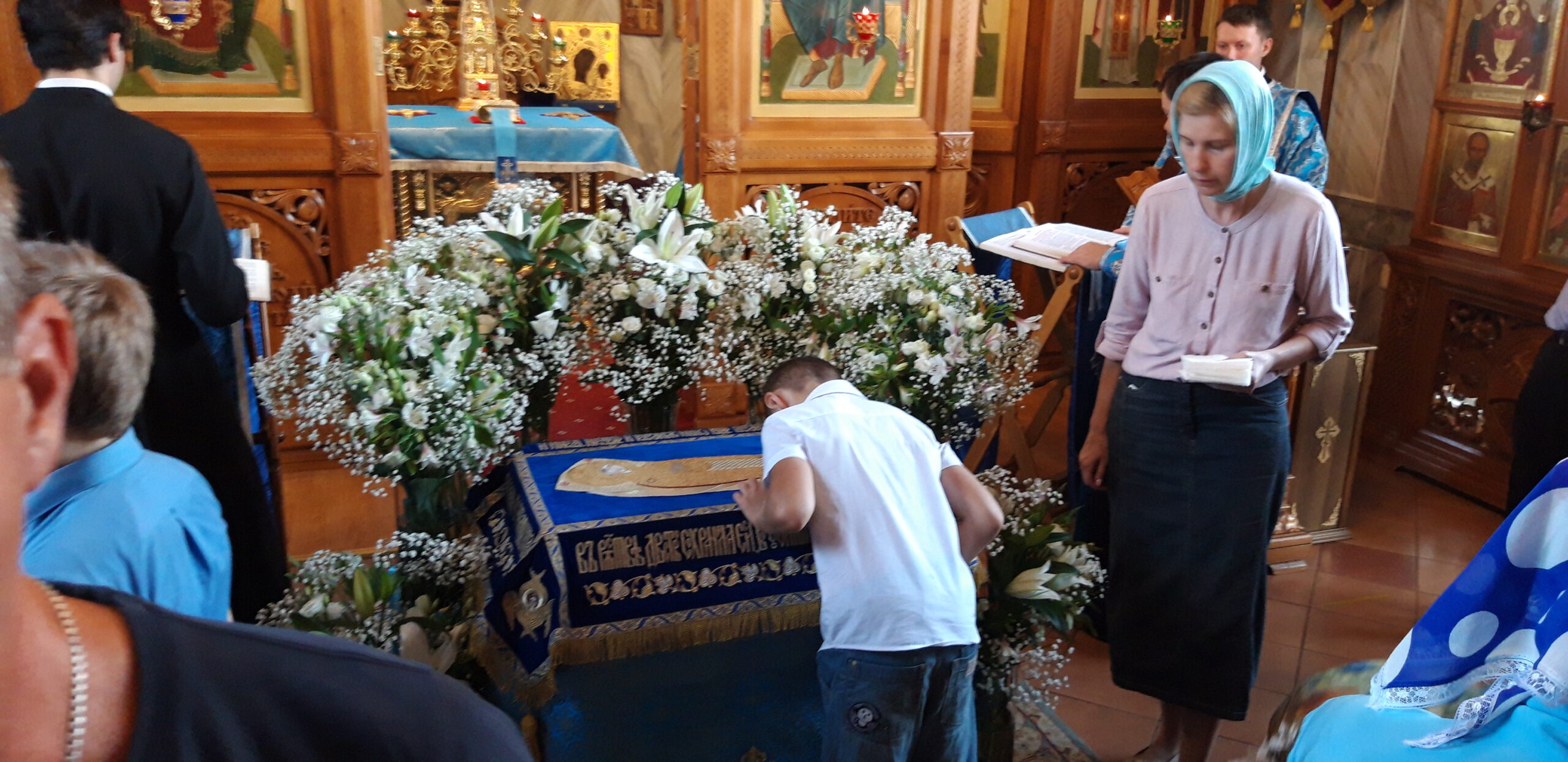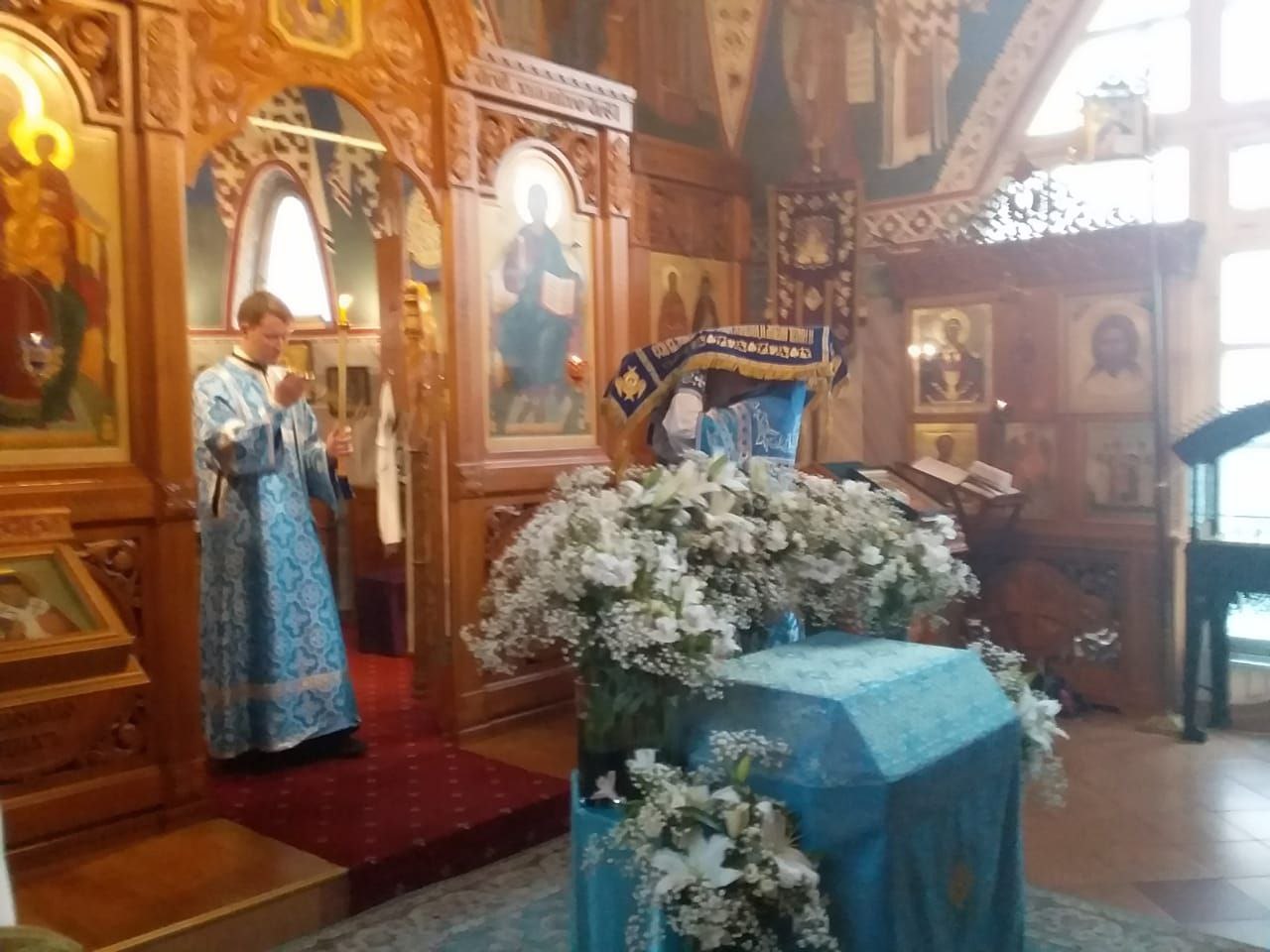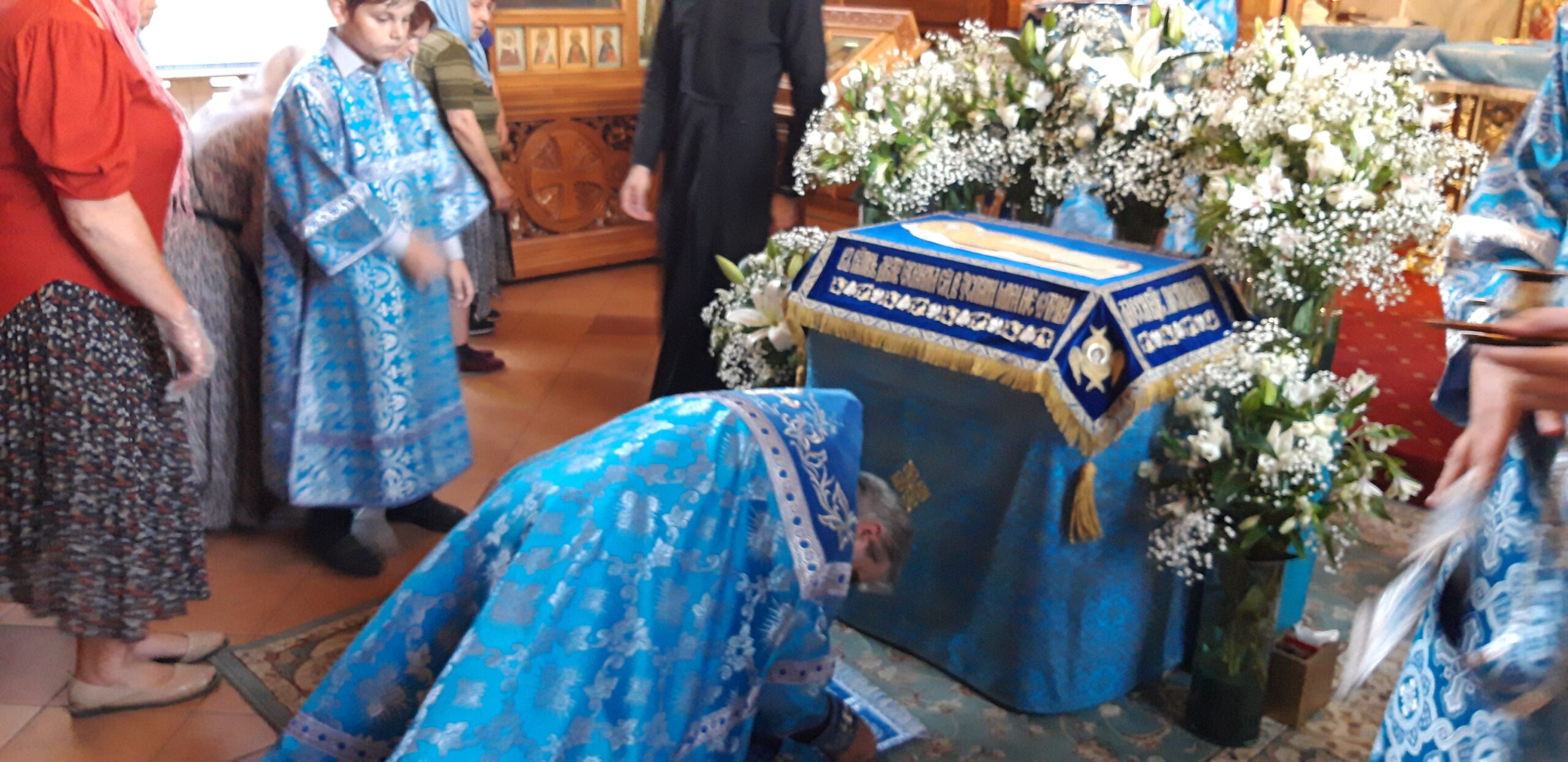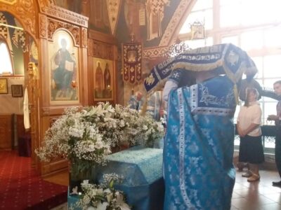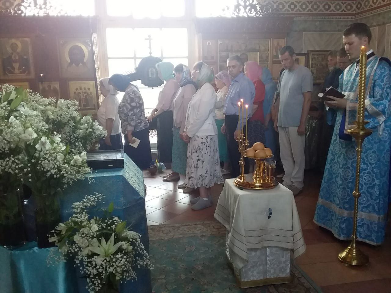 Всенощное бдение накануне вечером и Божественную литургию в этот праздничный день в храме святого праведного Иоанна Кронштадтского на Кронштадтской площади совершил настоятель храма протоиерей Михаил Подолей в сослужении клира.
