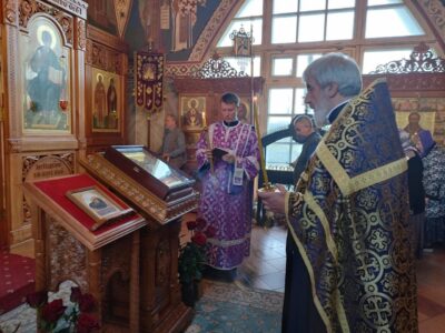 Всенощное бдение накануне вечером совершил настоятель храма святого праведного Иоанна Кронштадтского протоиерей Михаил Подолей в сослужении клира. После богослужения все прихожане поздравили отца Михаила с 18-й годовщиной служения в храме святого праведного Иоанна Кронштадтского.