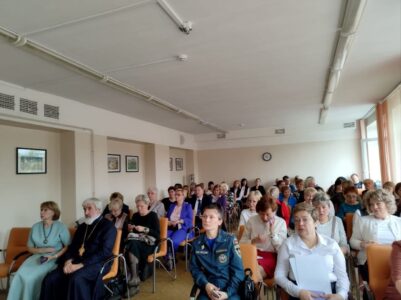 В своем вступительном слове отец Михаил сказал: «с одной стороны мне сегодня легко выступать перед вами, мы знакомы почти со всеми. А с другой стороны тяжело, так как я не знаю, в каком качестве я перед вами, в ваших глазах. Сказать начальник – нет, сказать, что выделяю бюджетные средства – тоже нет. Ну, кто я? Наставник – и это было бы правильно, но не с той точки зрения, чему я могу вас научить, а то, к чему я призываю вас как священник — нас всех следовать тому духовному наставничеству, без которого разговор о воспитании, возрастании наших детей, тех, кого мы учим, речи быть не может. Мы должны иметь ориентир.