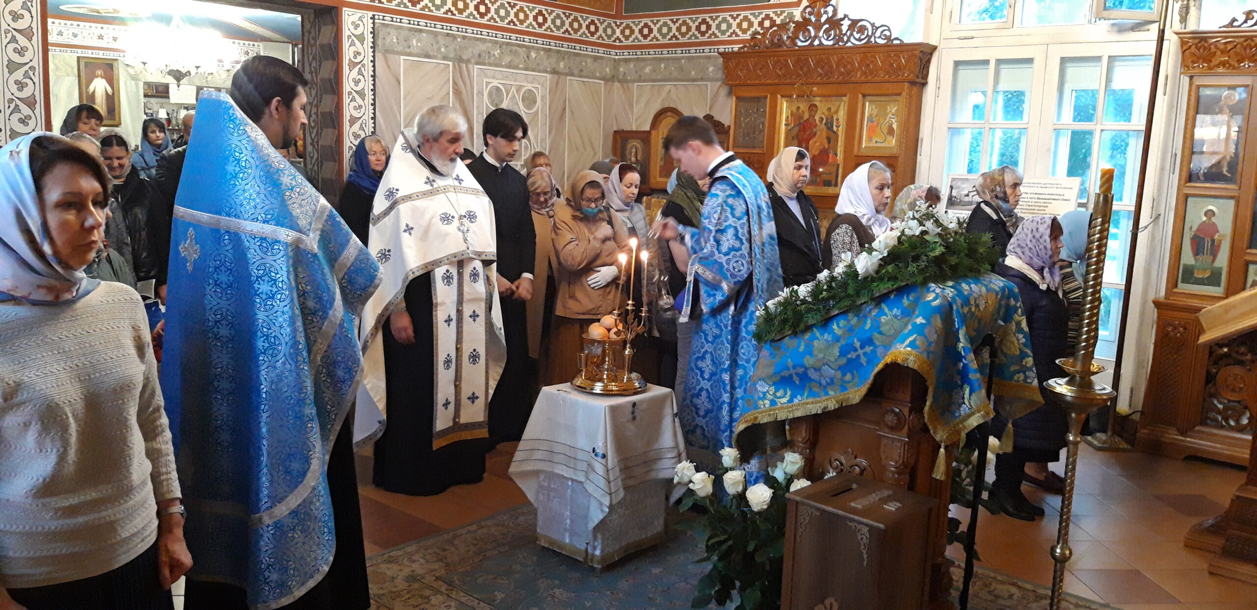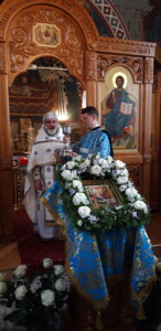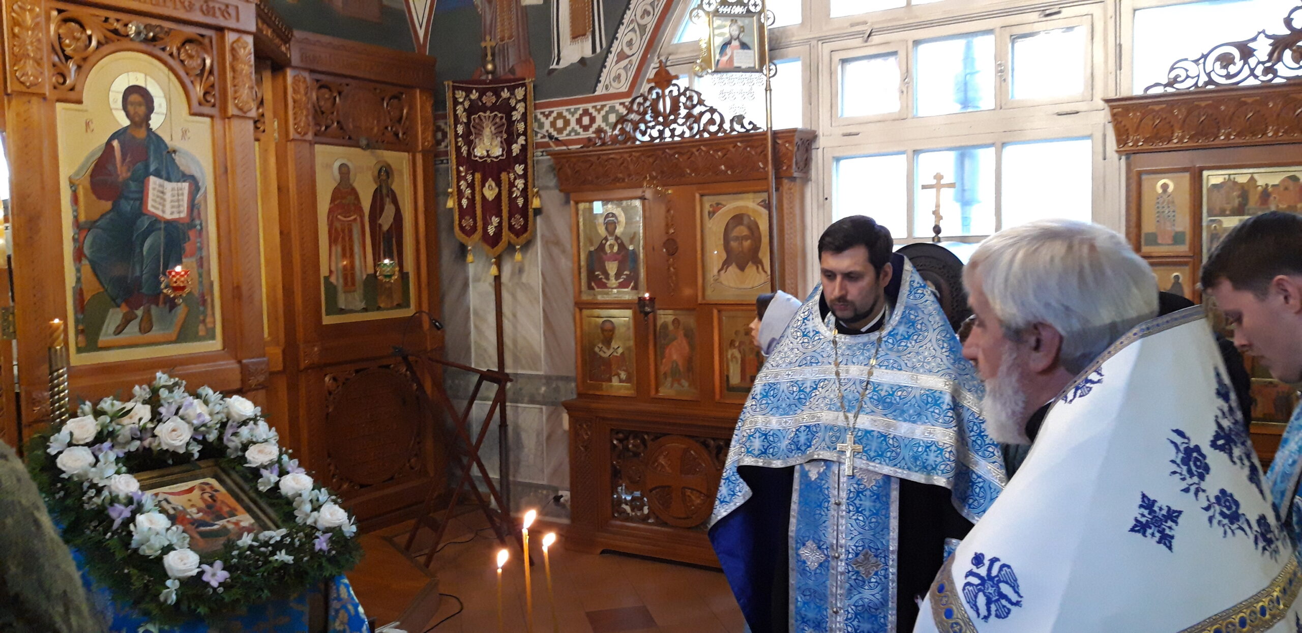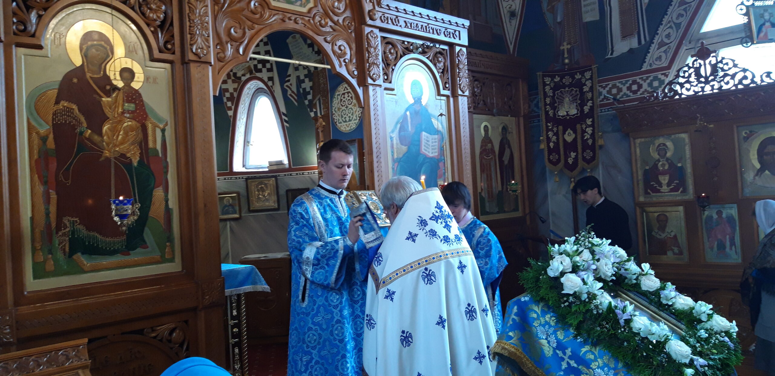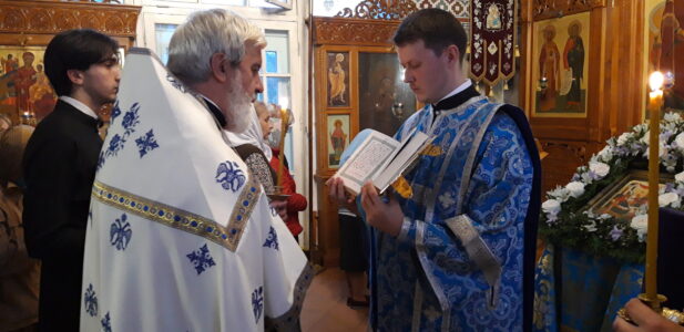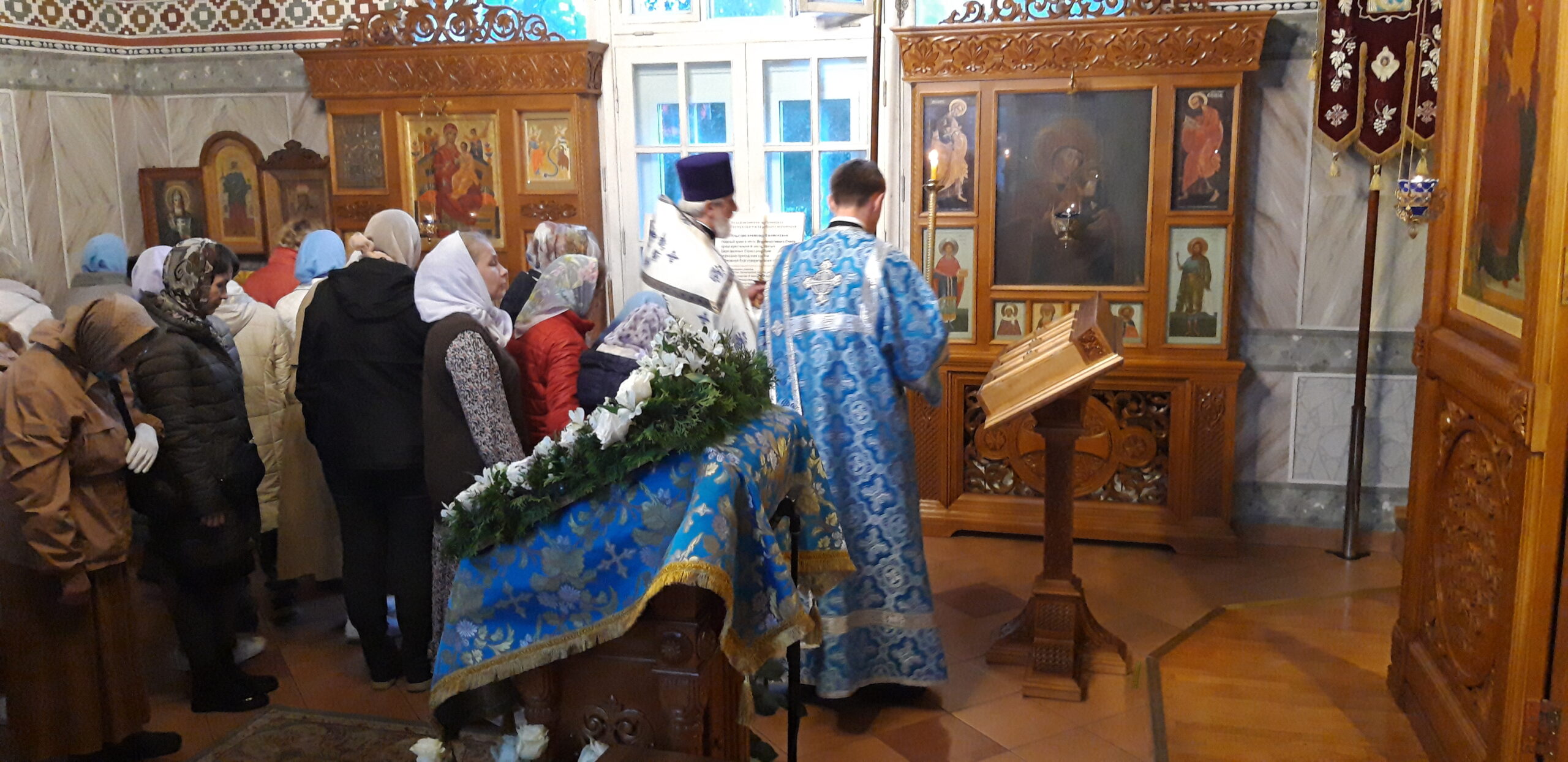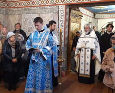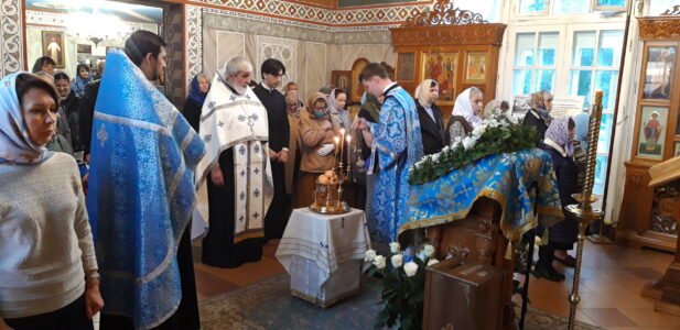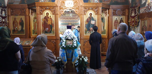 Всенощное бдение накануне вечером и Божественную литургию в праздничный день совершил настоятель храма святого праведного Иоанна Кронштадтского на Кронштадтской площади протоиерей Михаил Подолей в сослужении клира.