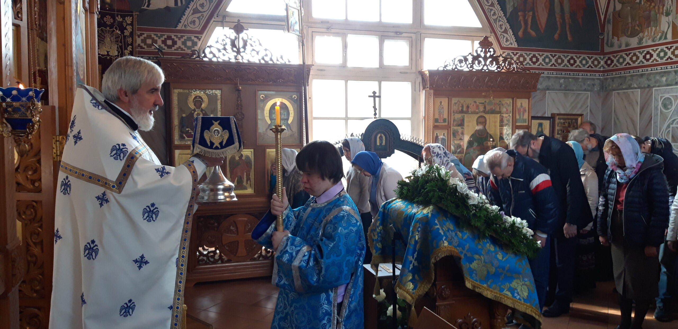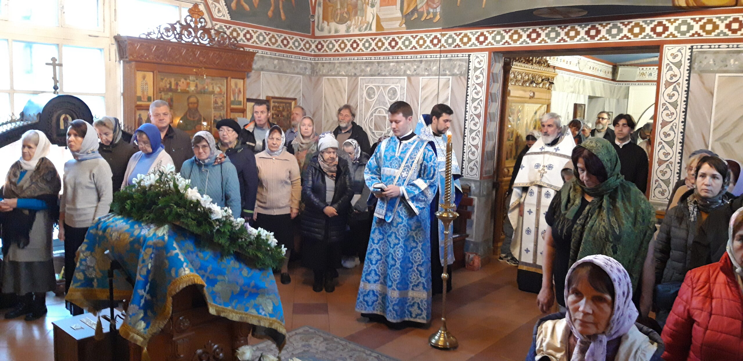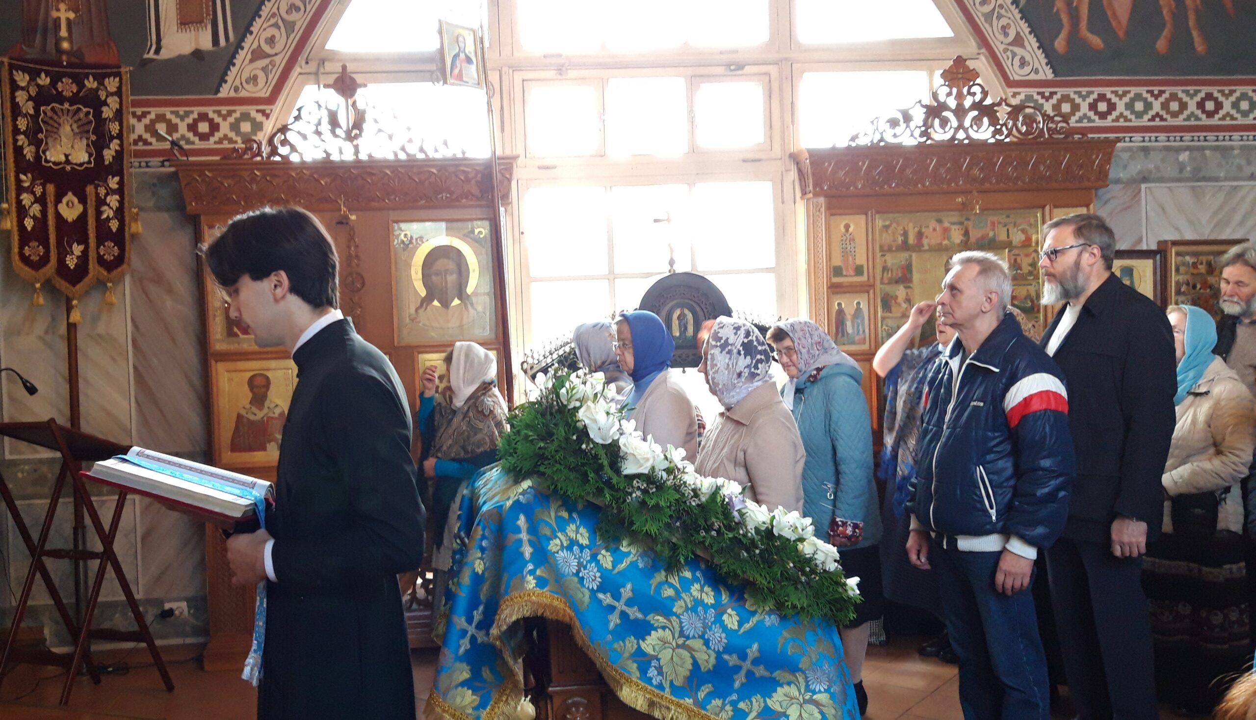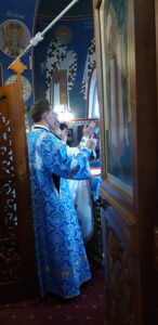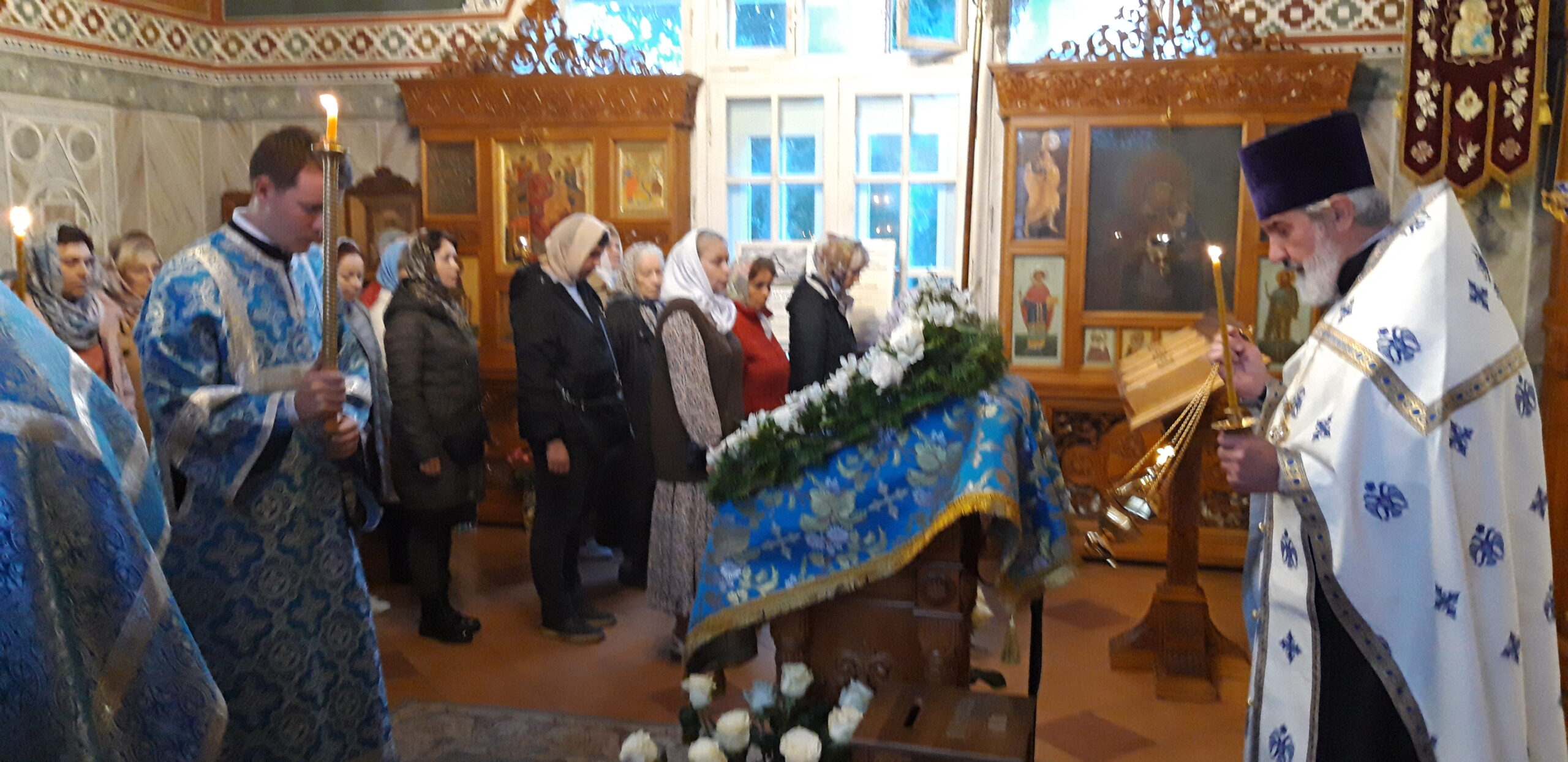 Всенощное бдение накануне вечером и Божественную литургию в праздничный день совершил настоятель храма святого праведного Иоанна Кронштадтского на Кронштадтской площади протоиерей Михаил Подолей в сослужении клира.