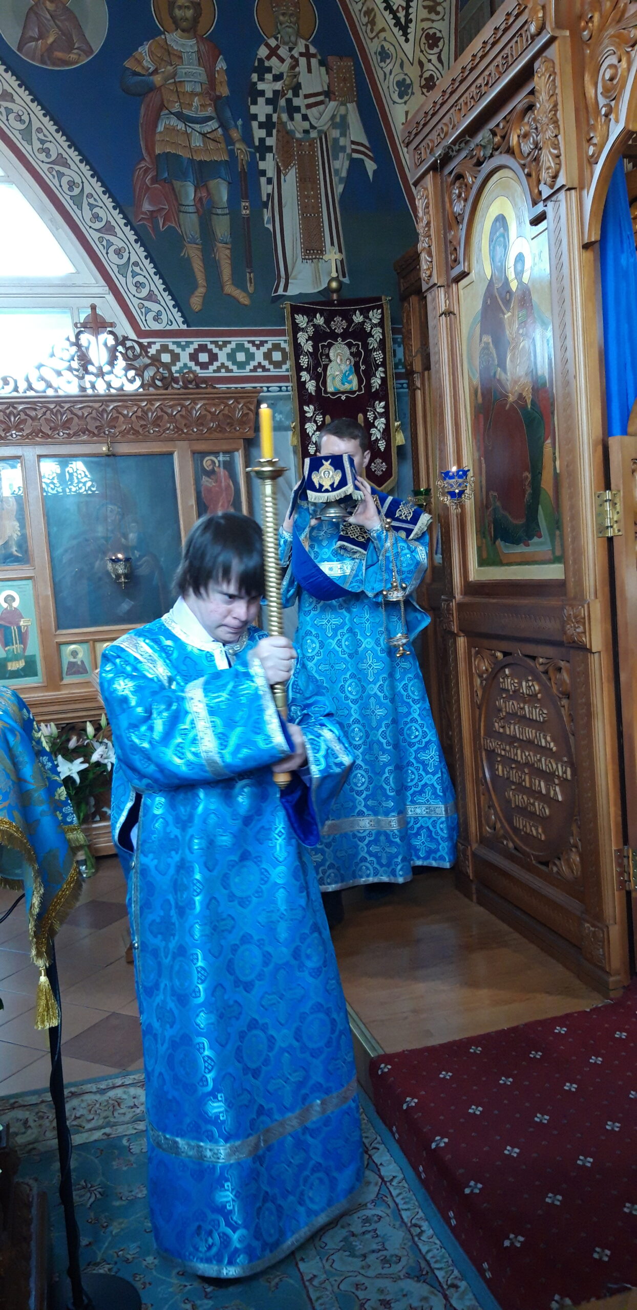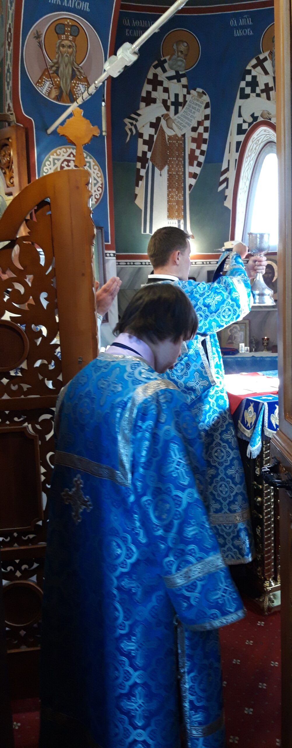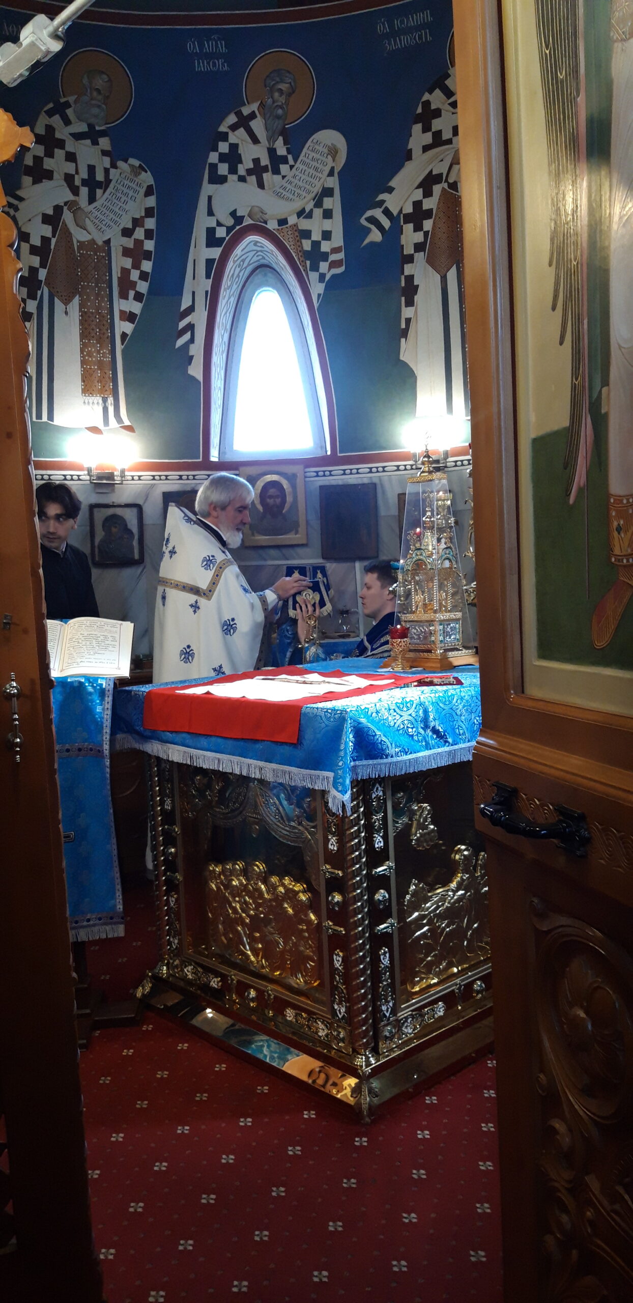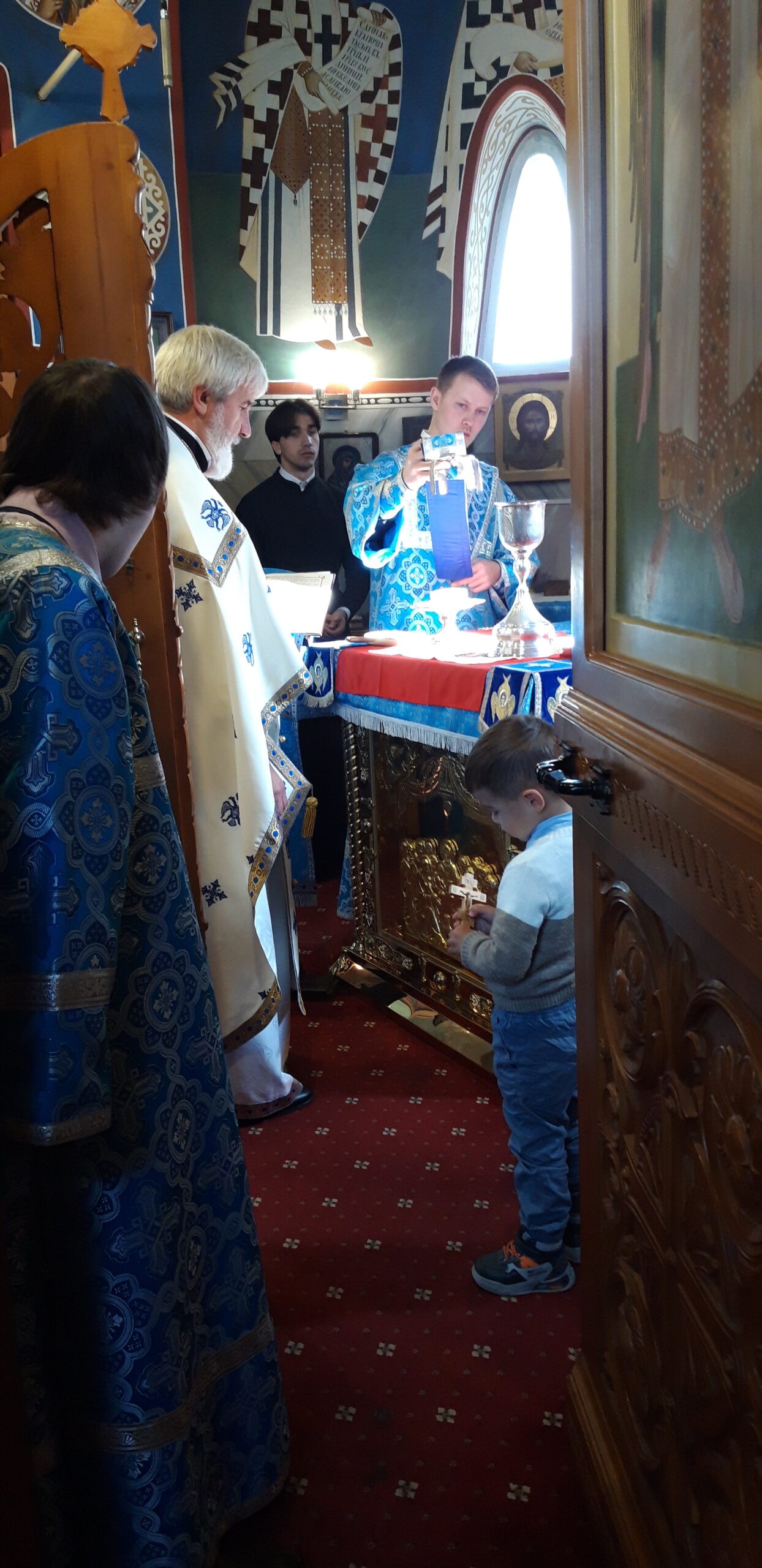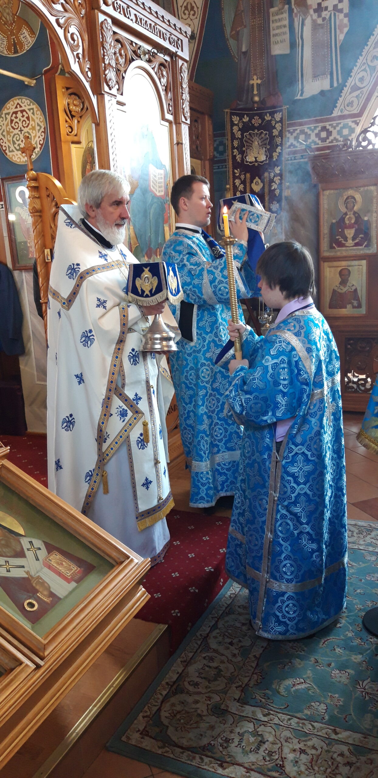 Всенощное бдение накануне вечером и Божественную литургию в праздничный день совершил настоятель храма святого праведного Иоанна Кронштадтского на Кронштадтской площади протоиерей Михаил Подолей в сослужении клира.