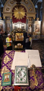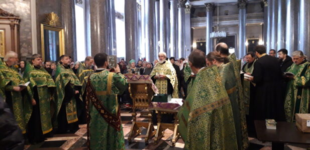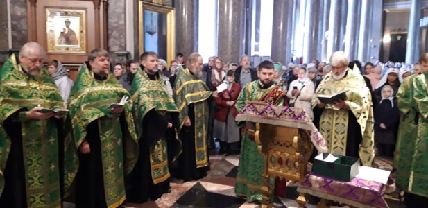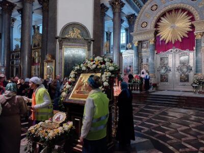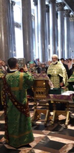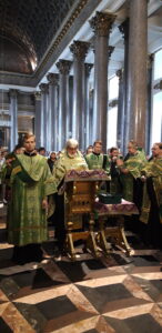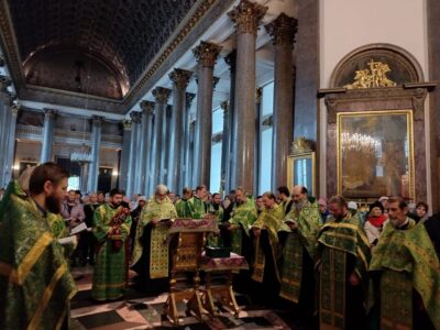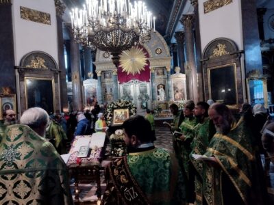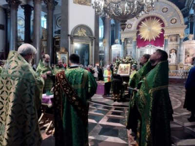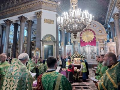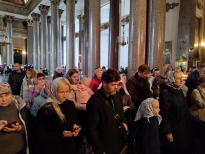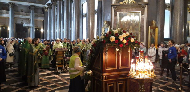 26 сентября 2022 года благочинный Красносельского благочиннического округа протоиерей Михаил Подолей и священнослужители благочиния совершили молебен с пением акафиста перед ковчегом с мощами преподобного Сергия Радонежского в Казанском кафедральном соборе.