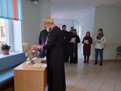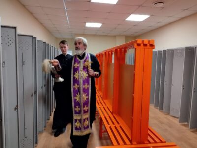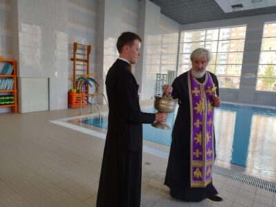 1 октября 2022 года, по приглашению директора школы №546 Красносельского района Куксенко Светланы Михайловны, благочинный протоиерей Михаил Подолей в сослужении клириков храма святого праведного Иоанна Кронштадтского на Кронштадтской площади посетили школу и совершили молебен, после чего освятили помещения бассейна, расположенные в здании школы.