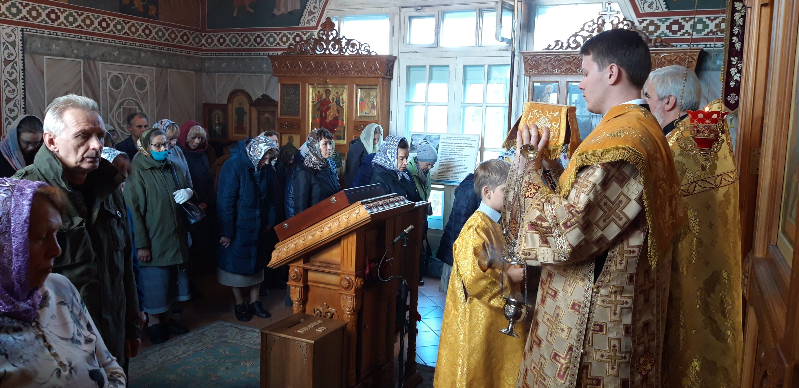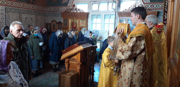 Всенощное бдение накануне вечером и Божественную литургию в Неделю 17-ю по Пятидесятнице в храме святого праведного Иоанна Кронштадтского на Кронштадтской площади совершил настоятель храма протоирей Михаил Подолей в сослужении клира.
