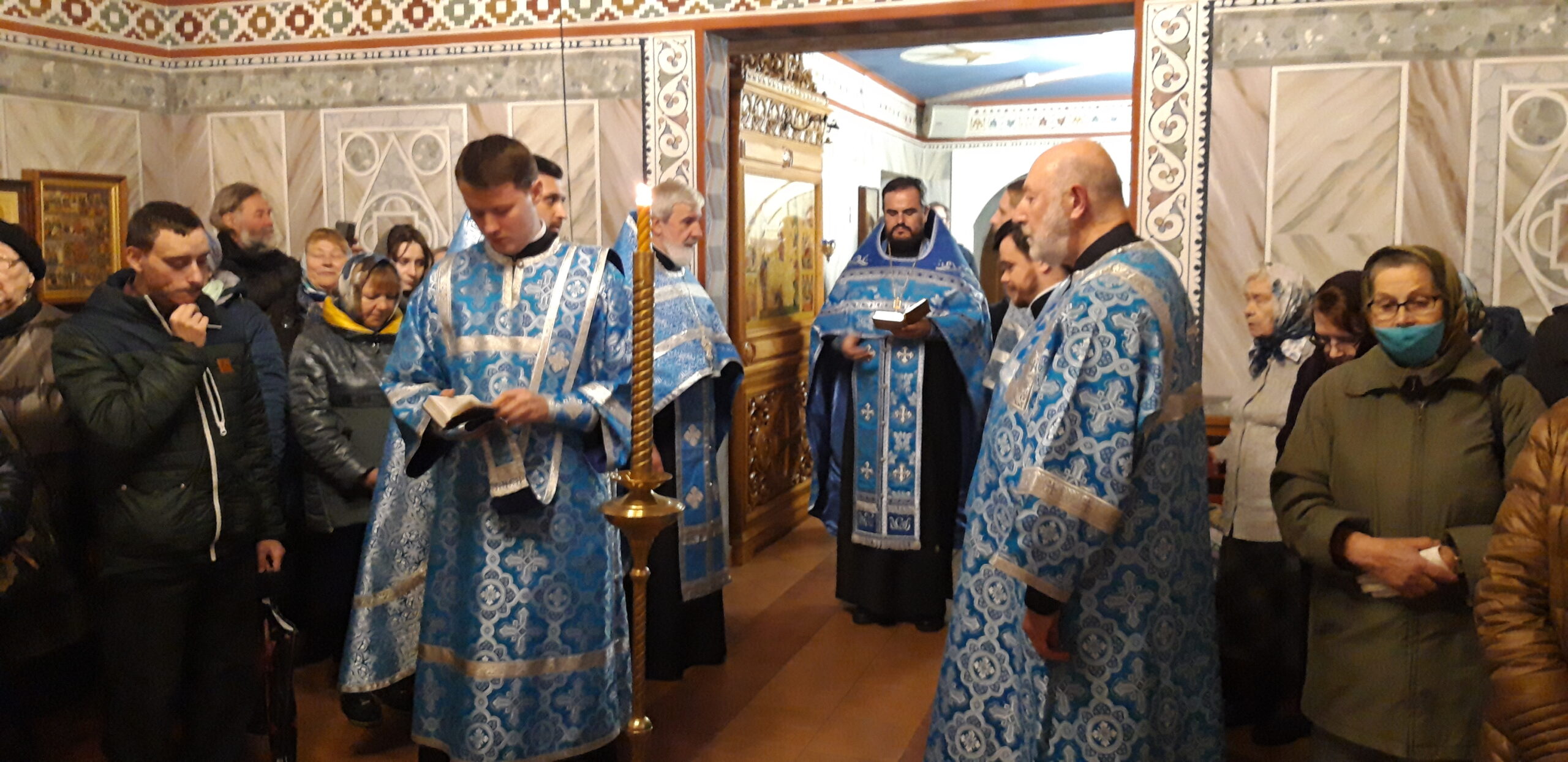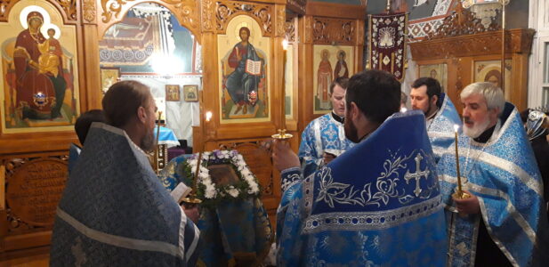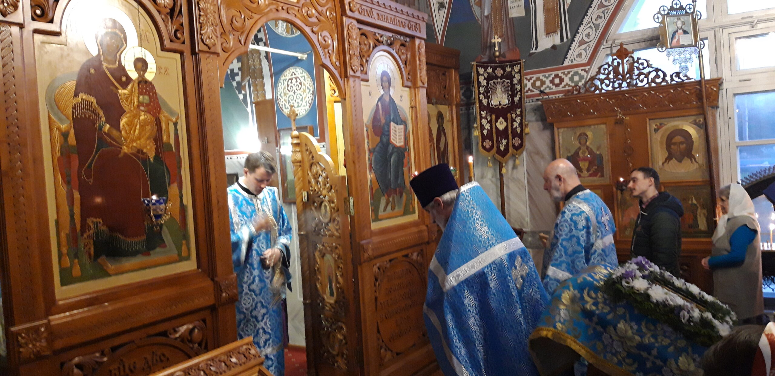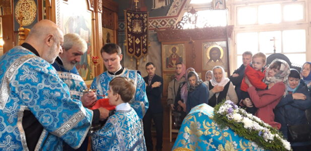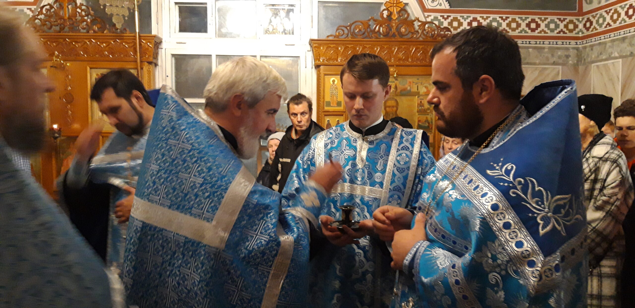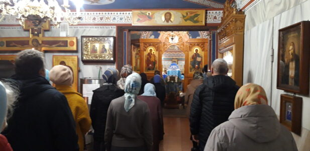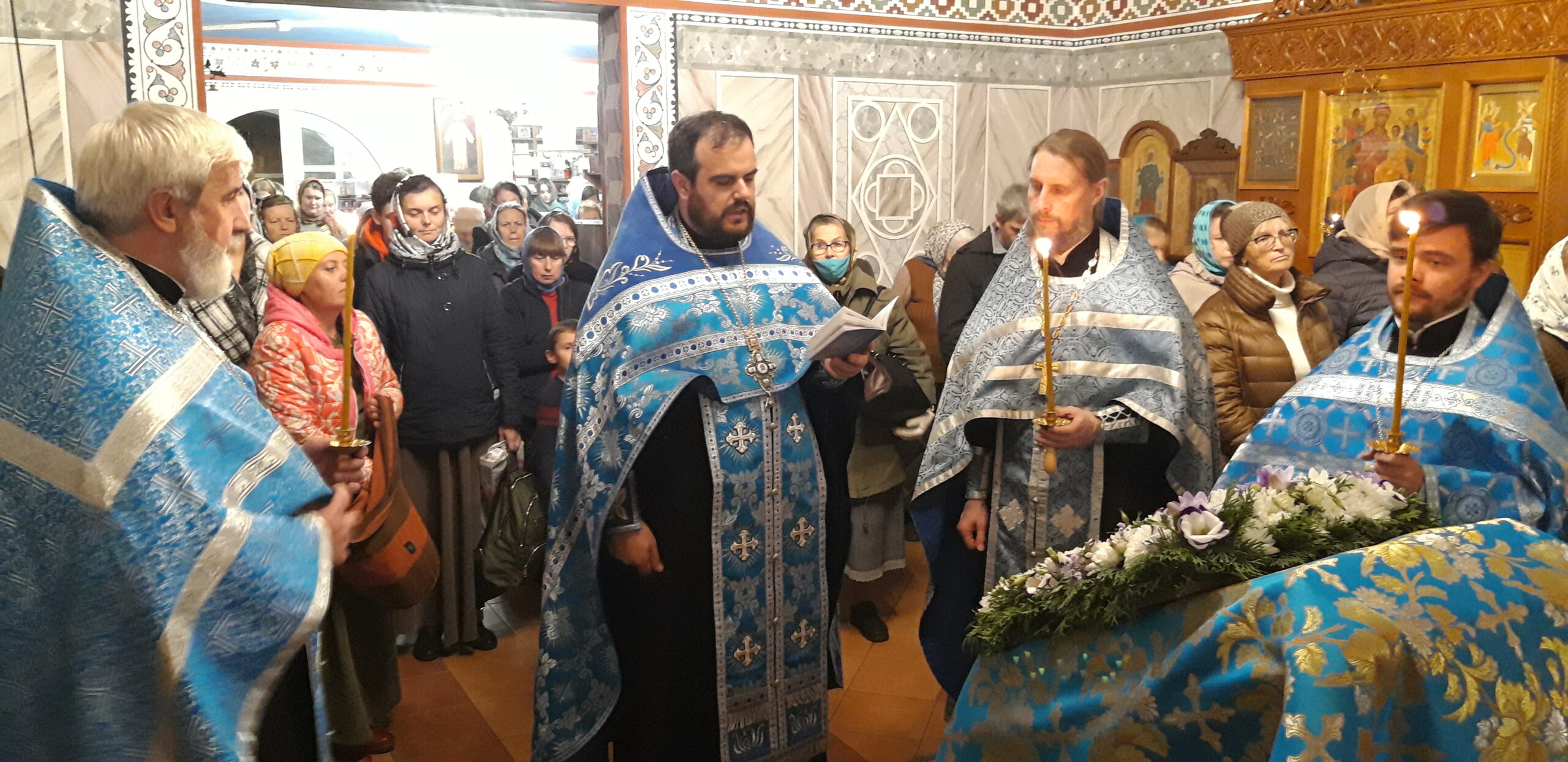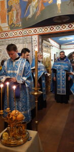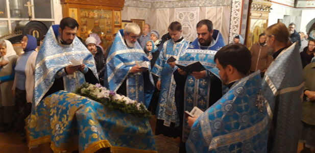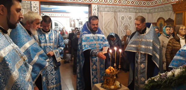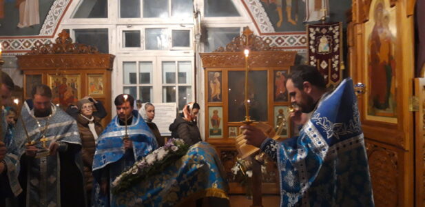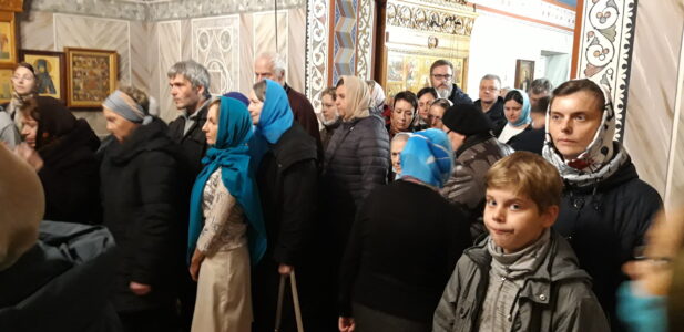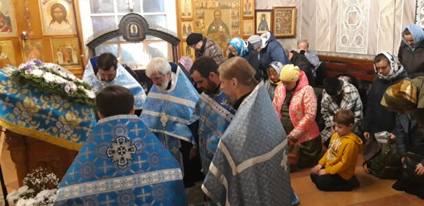 В канун праздника Покрова Пресвятой Владычицы нашей Богородицы и Приснодевы Марии, 13 октября, в храме святого праведного Иоанна Кронштадтского на Кронштадтской площади Всенощное бдение совершил настоятель храма протоиерей Михаил Подолей. Ему сослужил секретарь Черногорско-Приморской митрополии протоиерей Остоя (Кнежевич) (Сербская Православная Церковь).