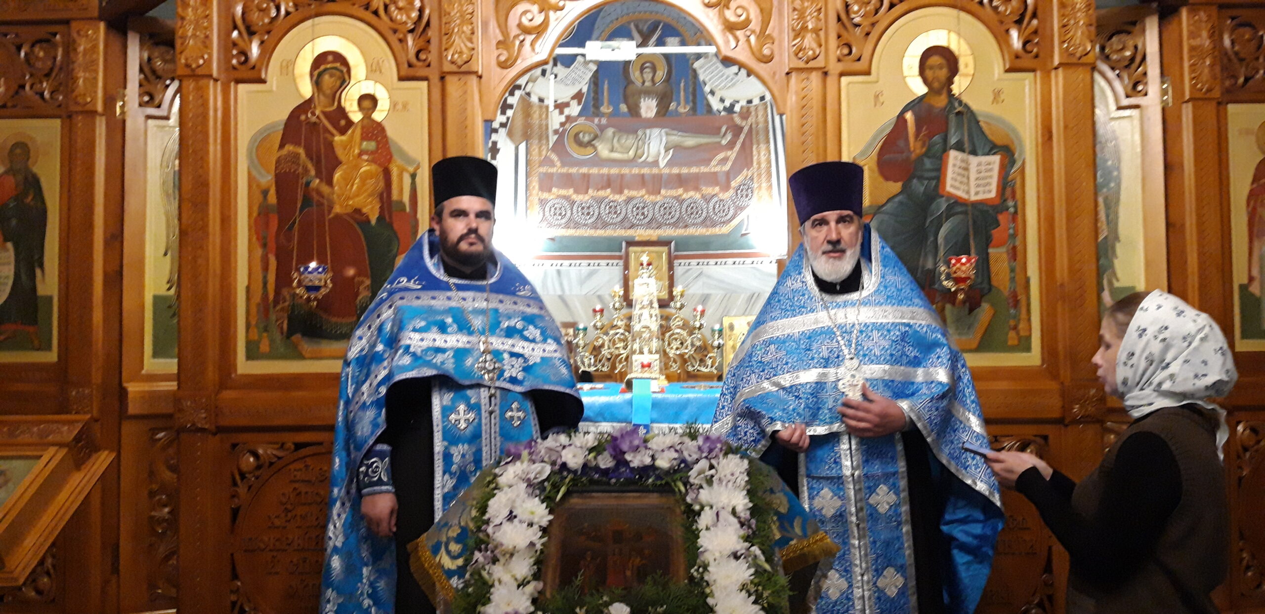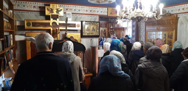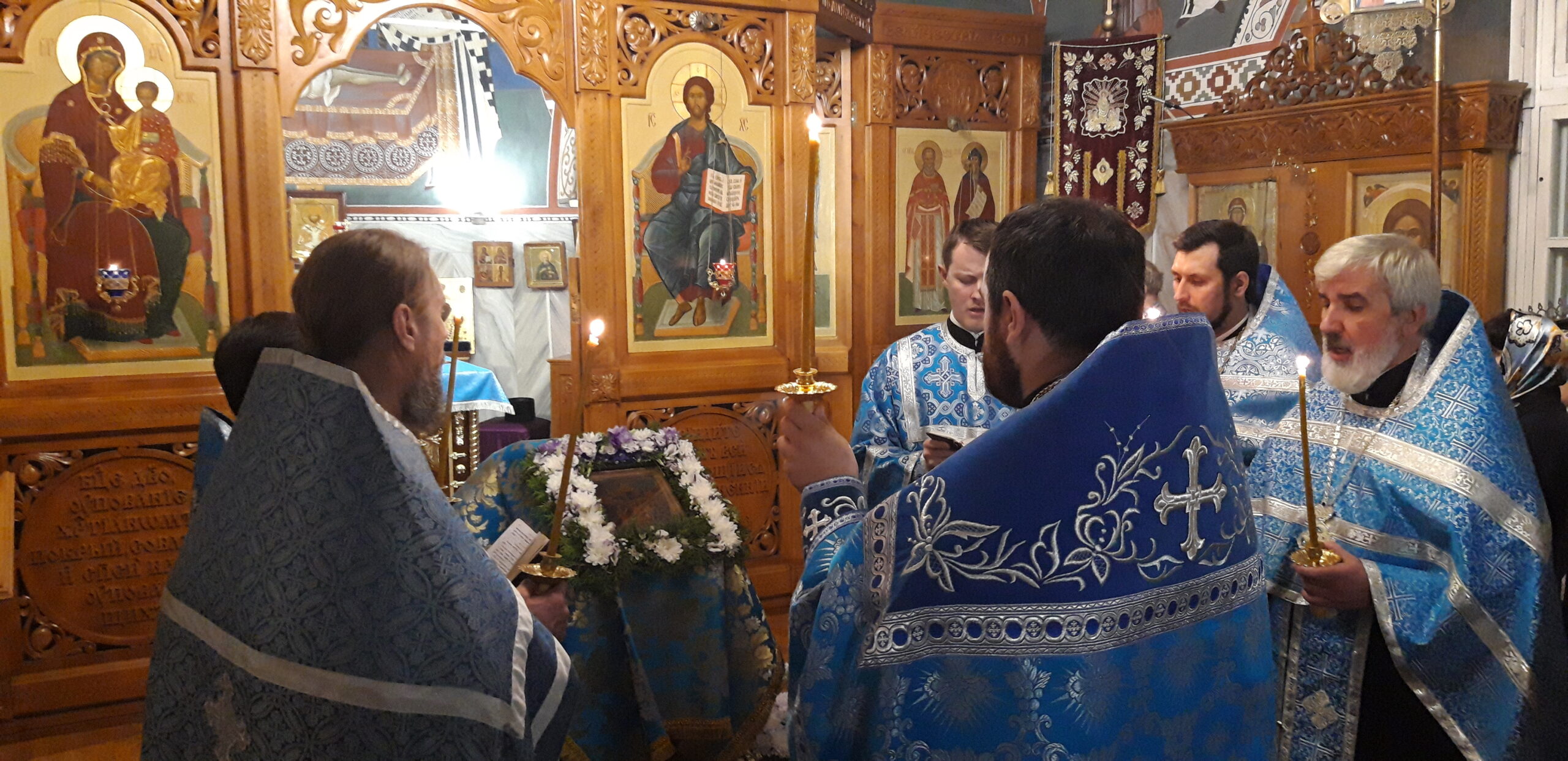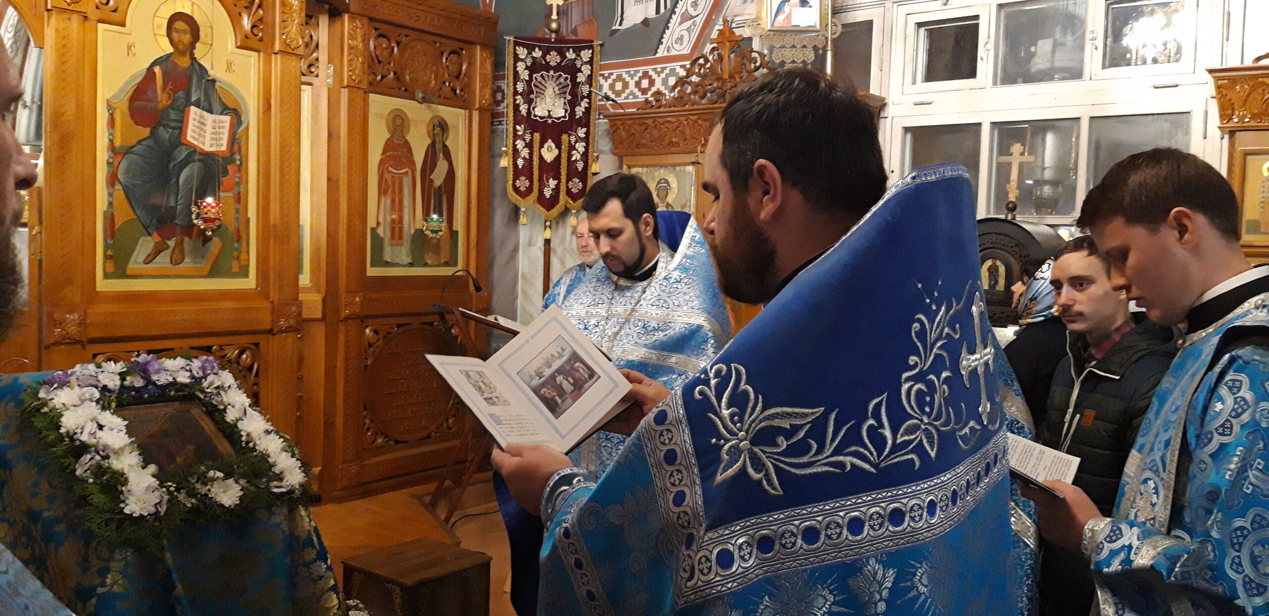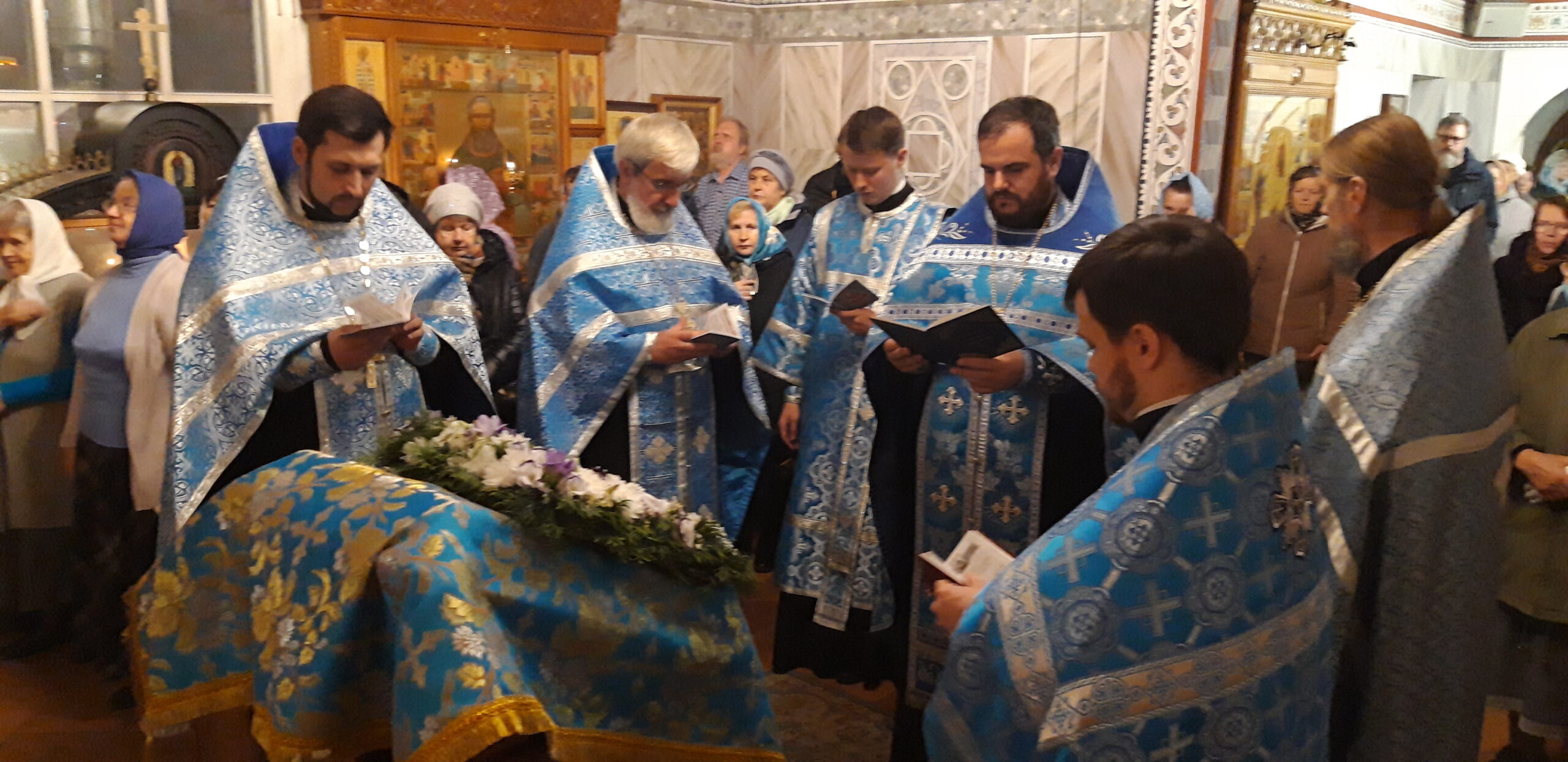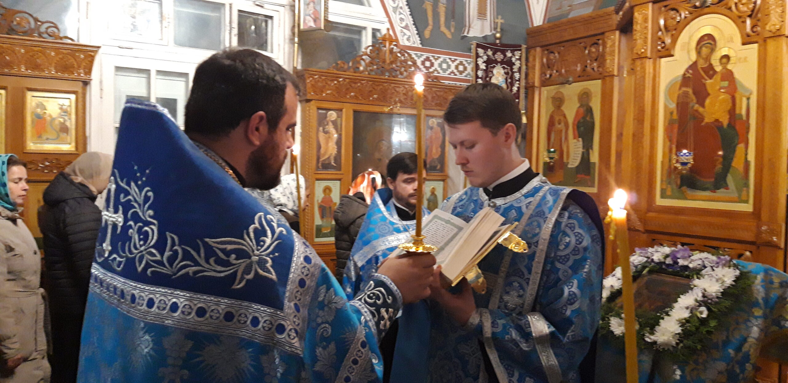 В канун праздника Покрова Пресвятой Владычицы нашей Богородицы и Приснодевы Марии, 13 октября, в храме святого праведного Иоанна Кронштадтского на Кронштадтской площади Всенощное бдение совершил настоятель храма протоиерей Михаил Подолей. Ему сослужил секретарь Черногорско-Приморской митрополии протоиерей Остоя (Кнежевич) (Сербская Православная Церковь).