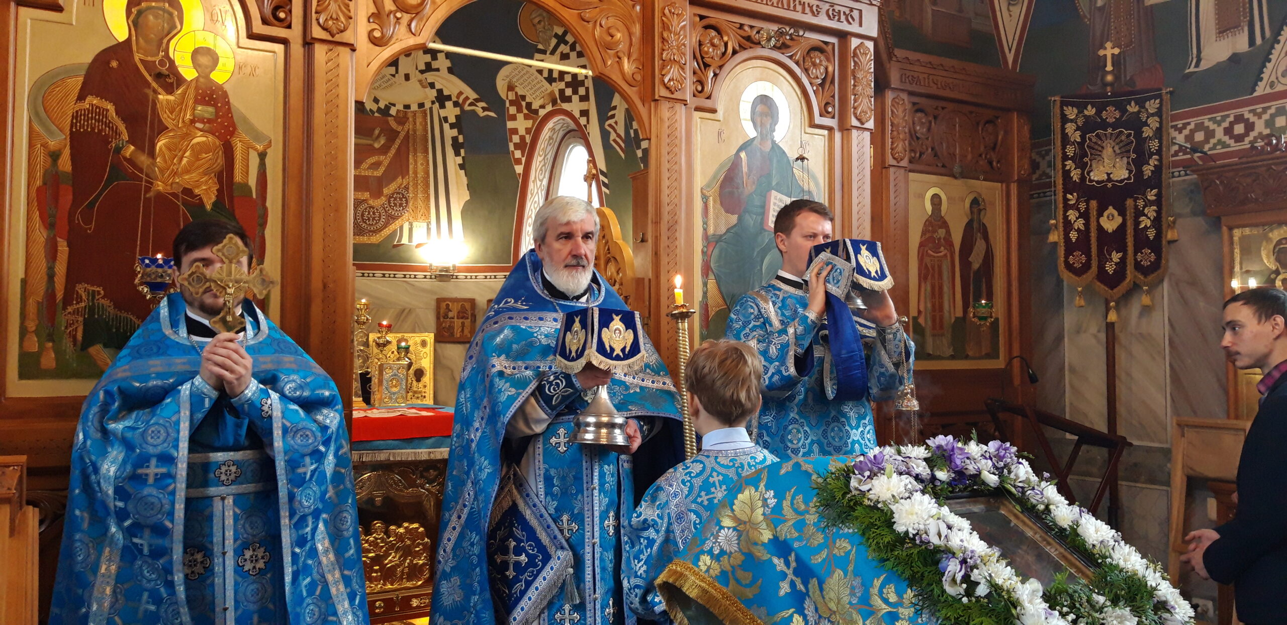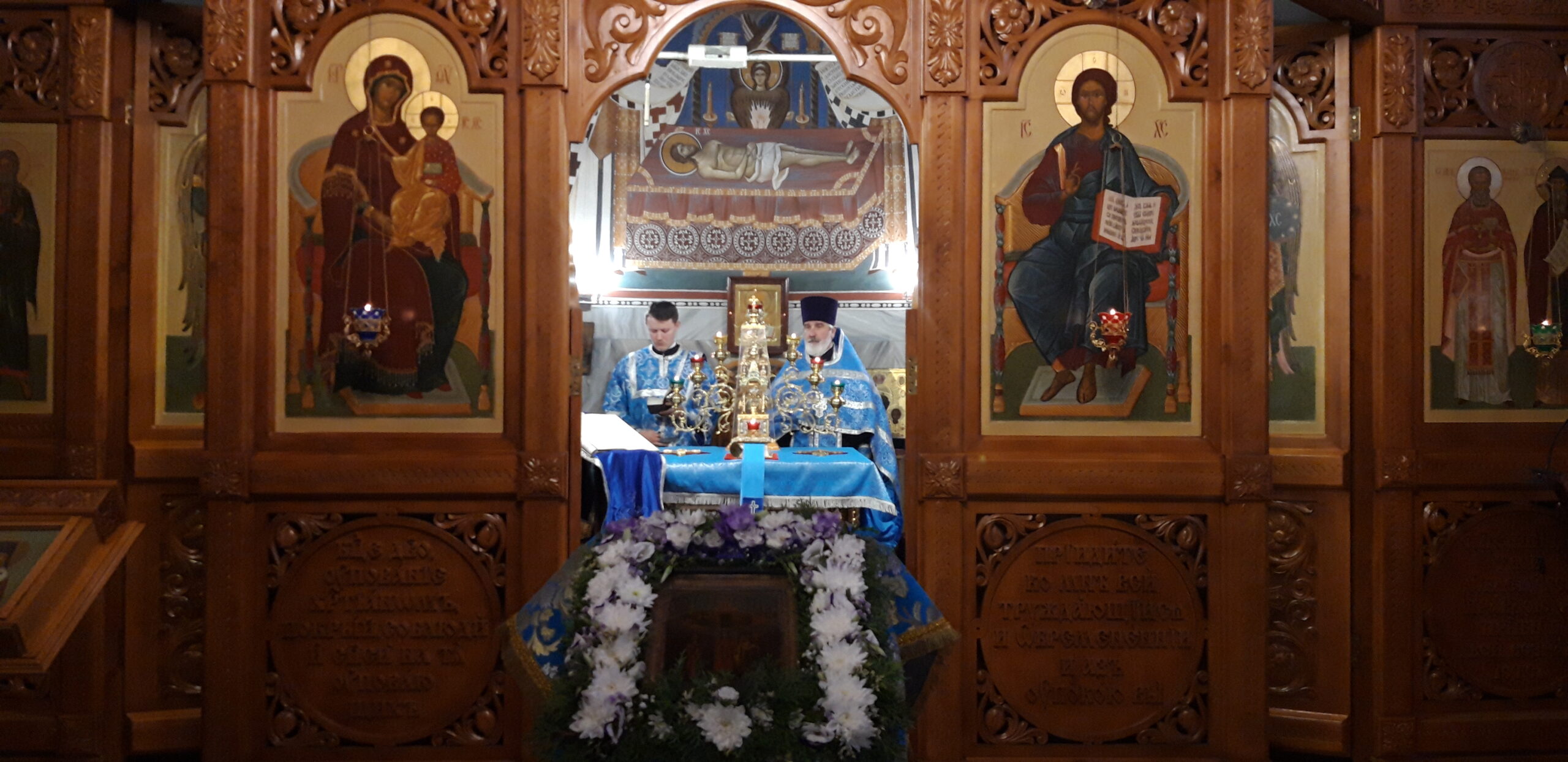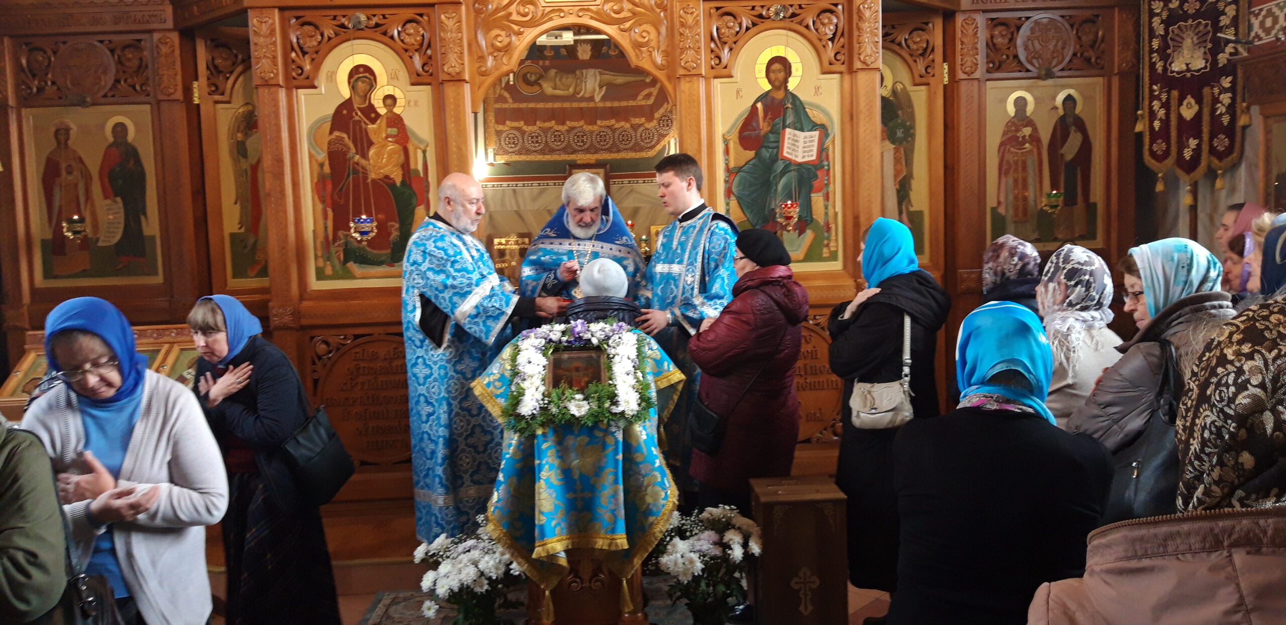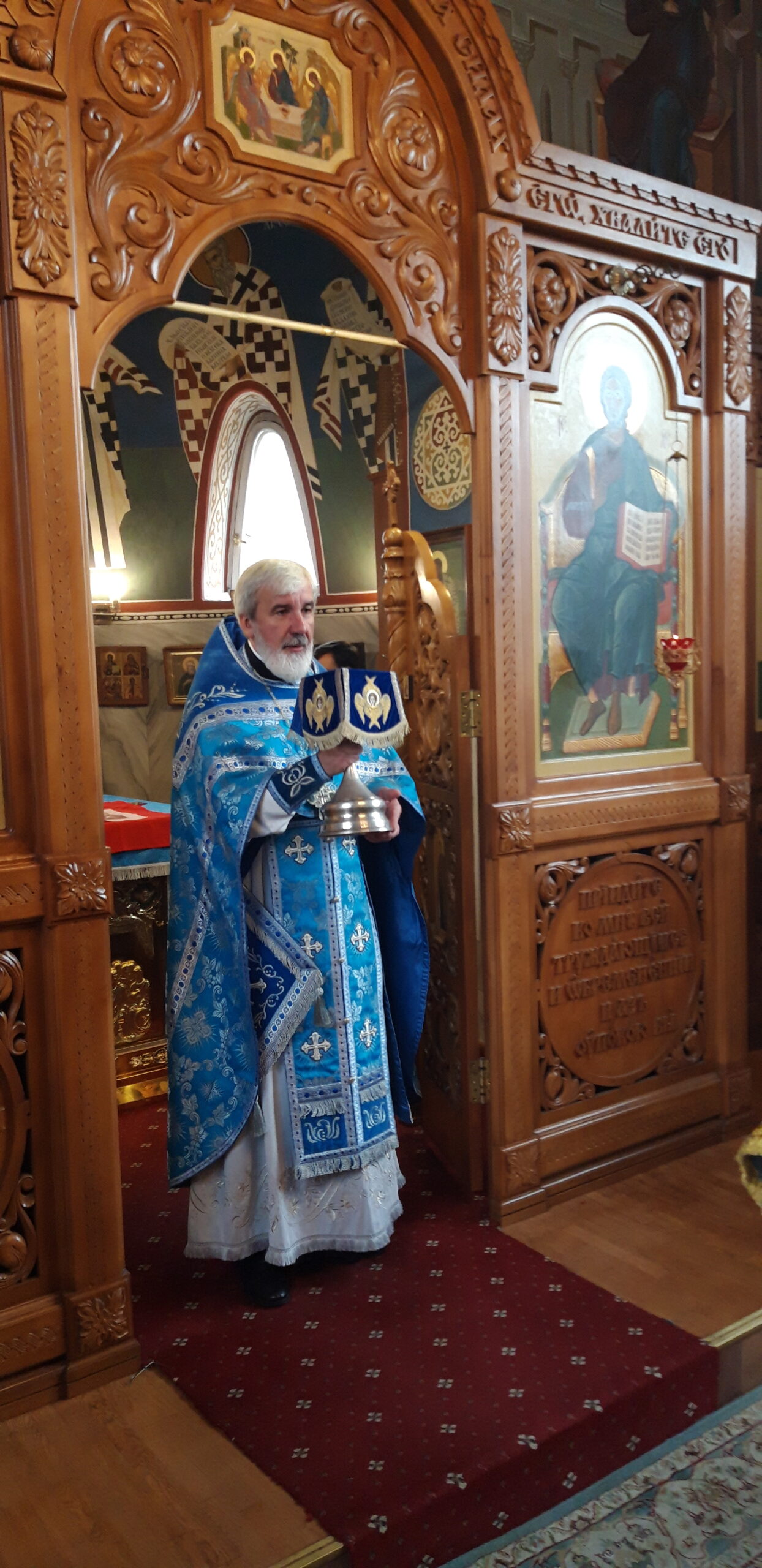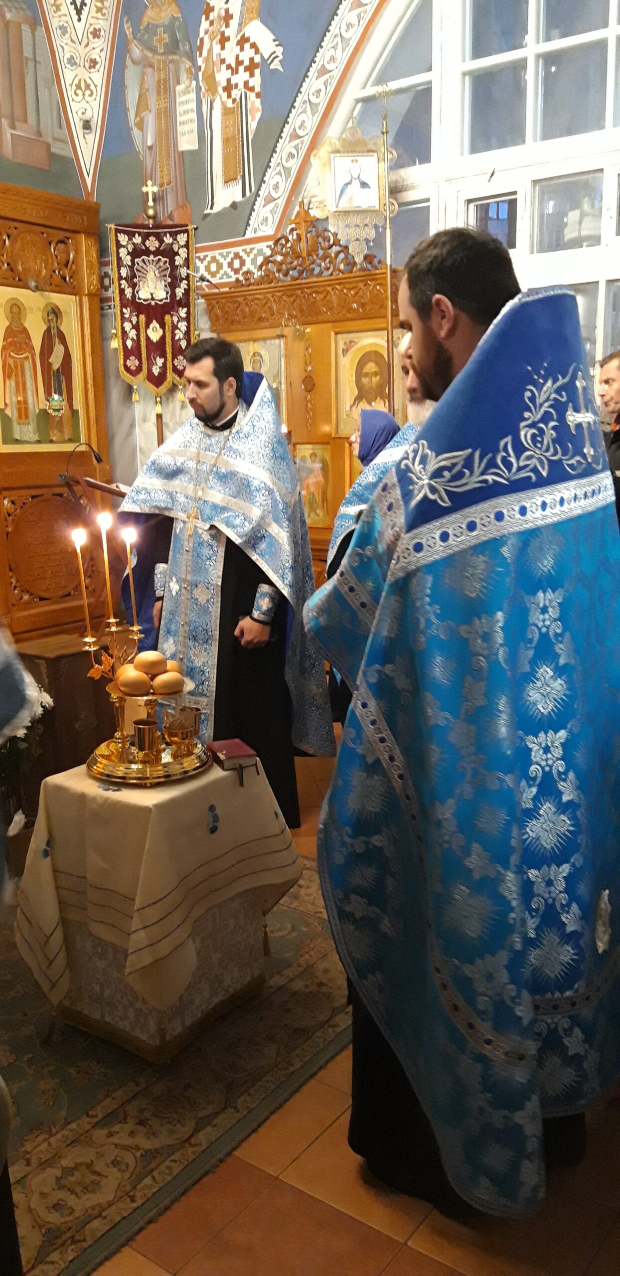 В канун праздника Покрова Пресвятой Владычицы нашей Богородицы и Приснодевы Марии, 13 октября, в храме святого праведного Иоанна Кронштадтского на Кронштадтской площади Всенощное бдение совершил настоятель храма протоиерей Михаил Подолей. Ему сослужил секретарь Черногорско-Приморской митрополии протоиерей Остоя (Кнежевич) (Сербская Православная Церковь).