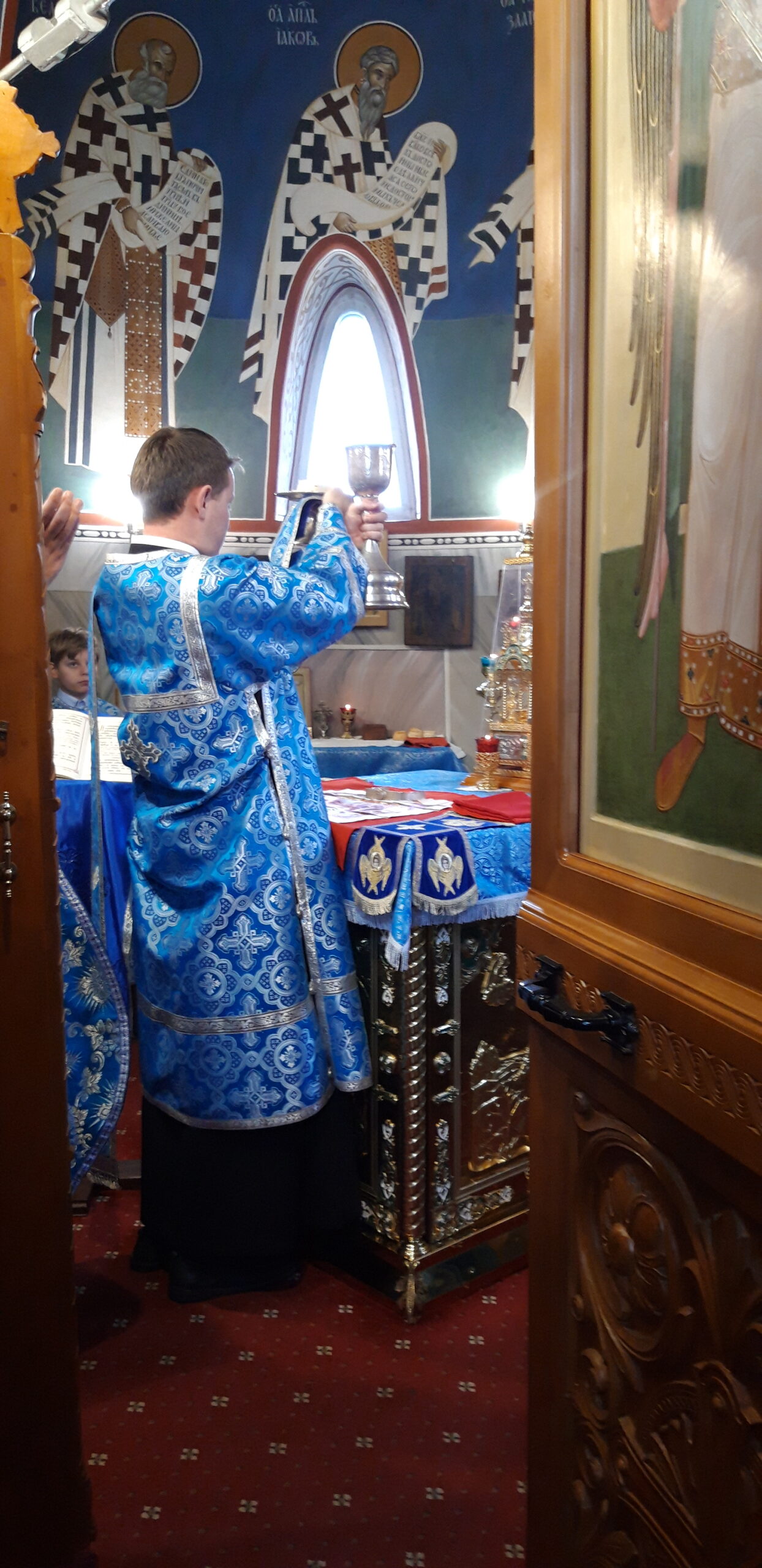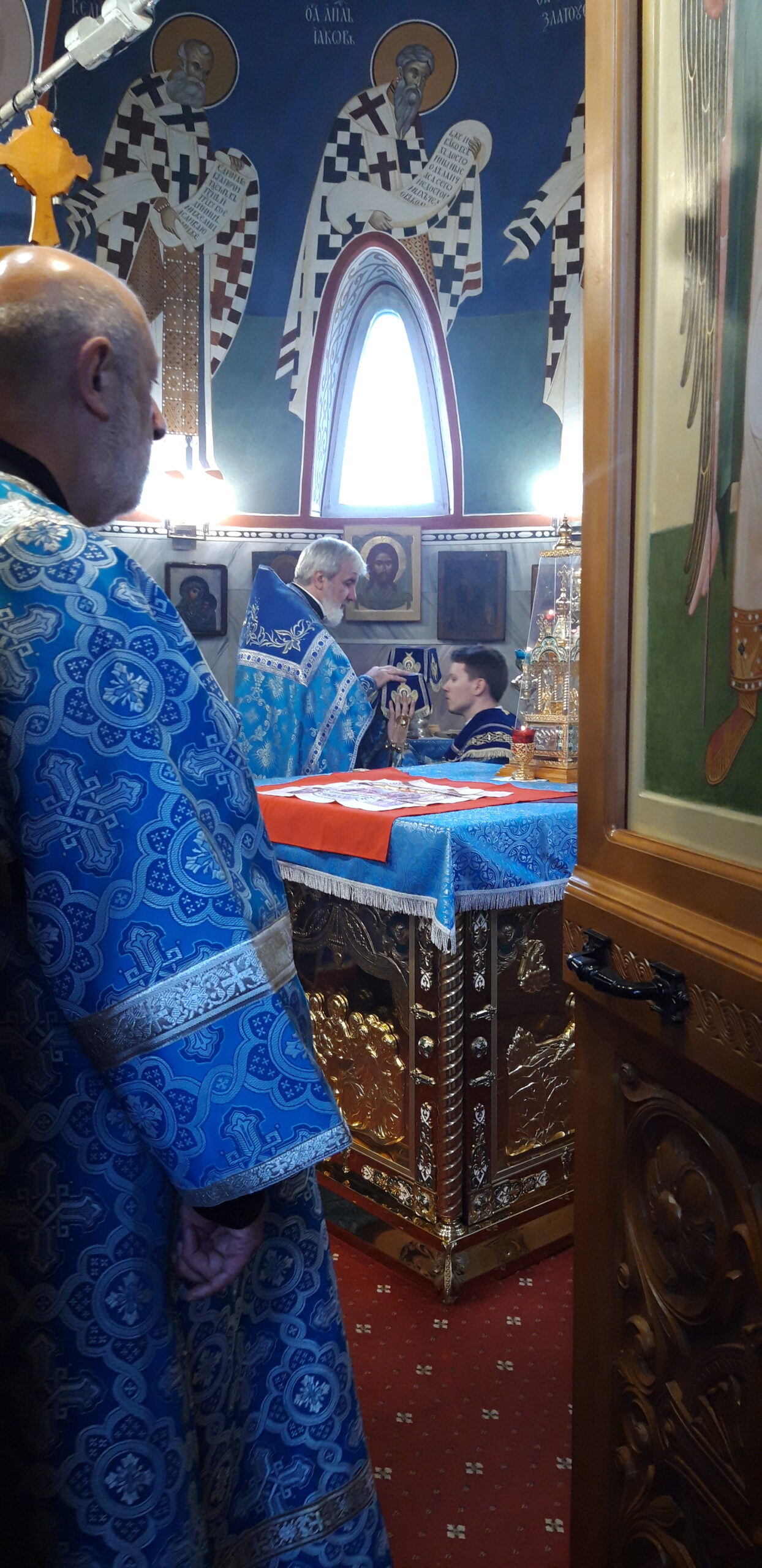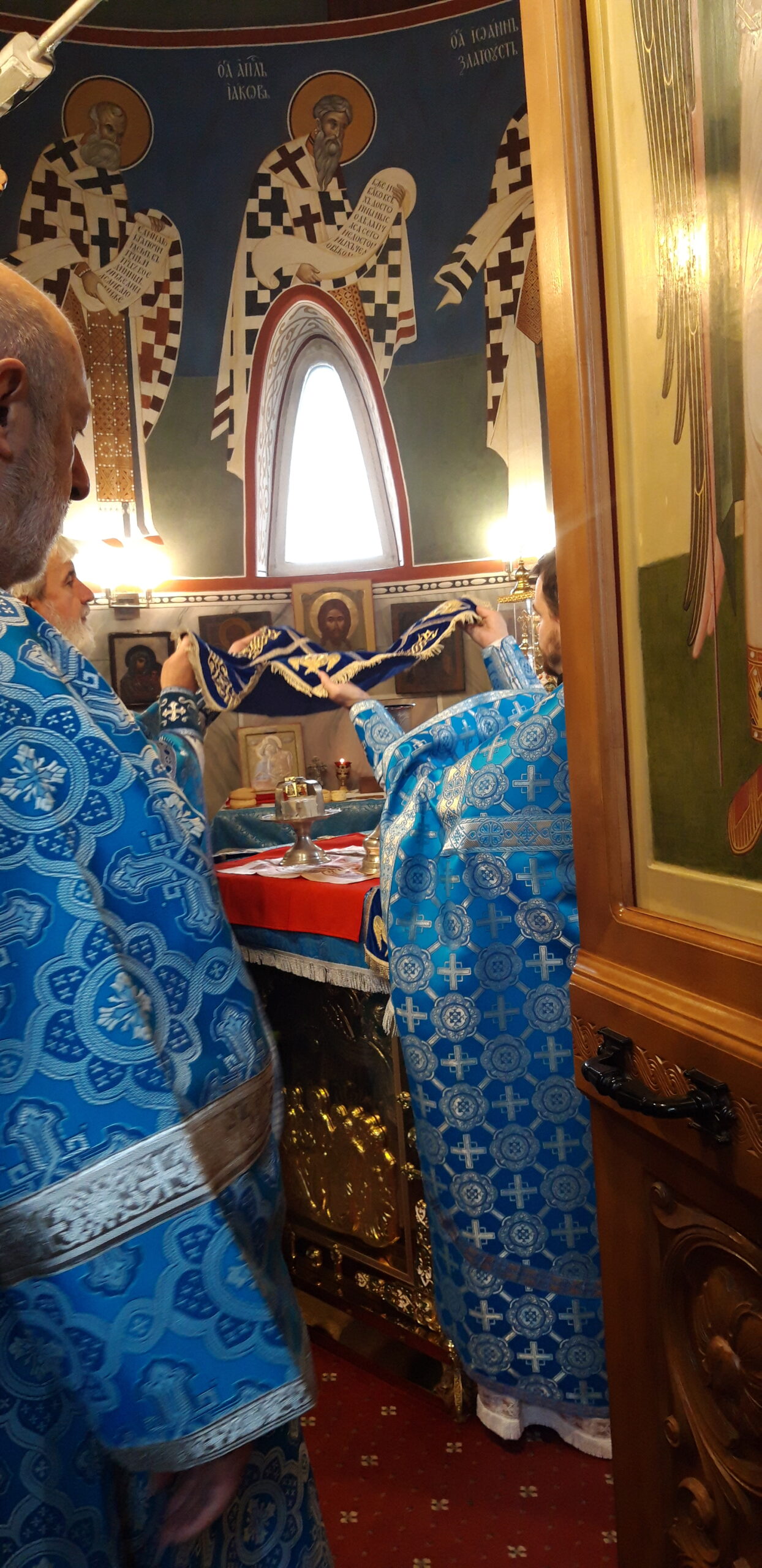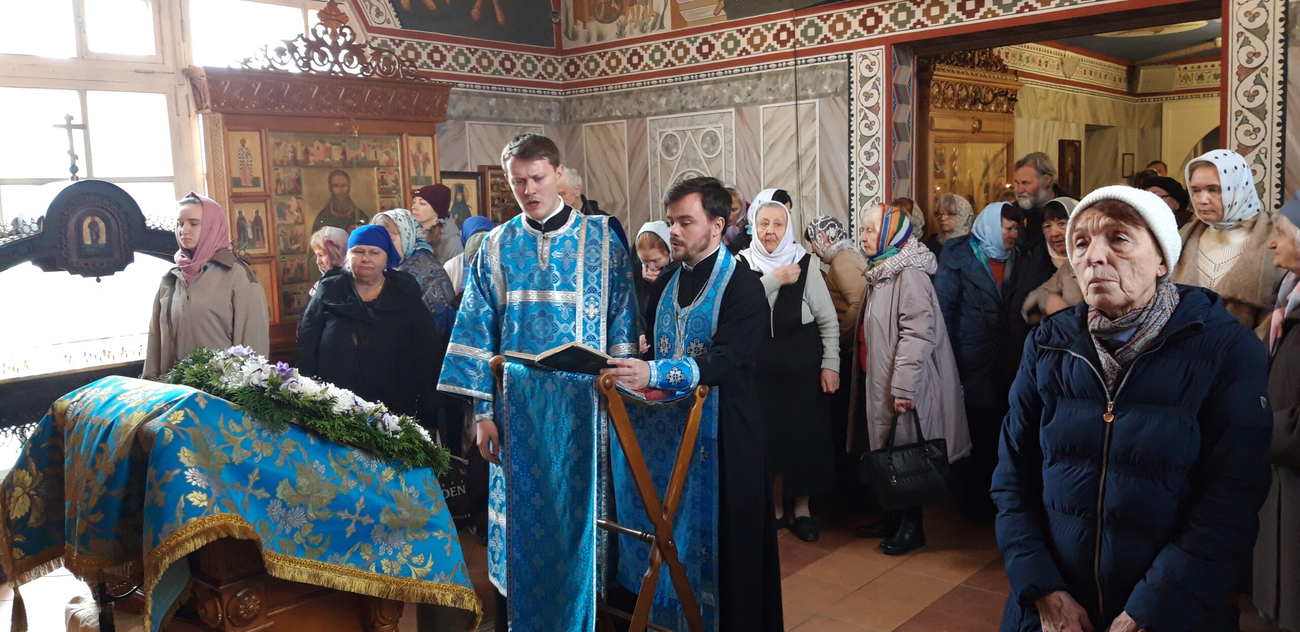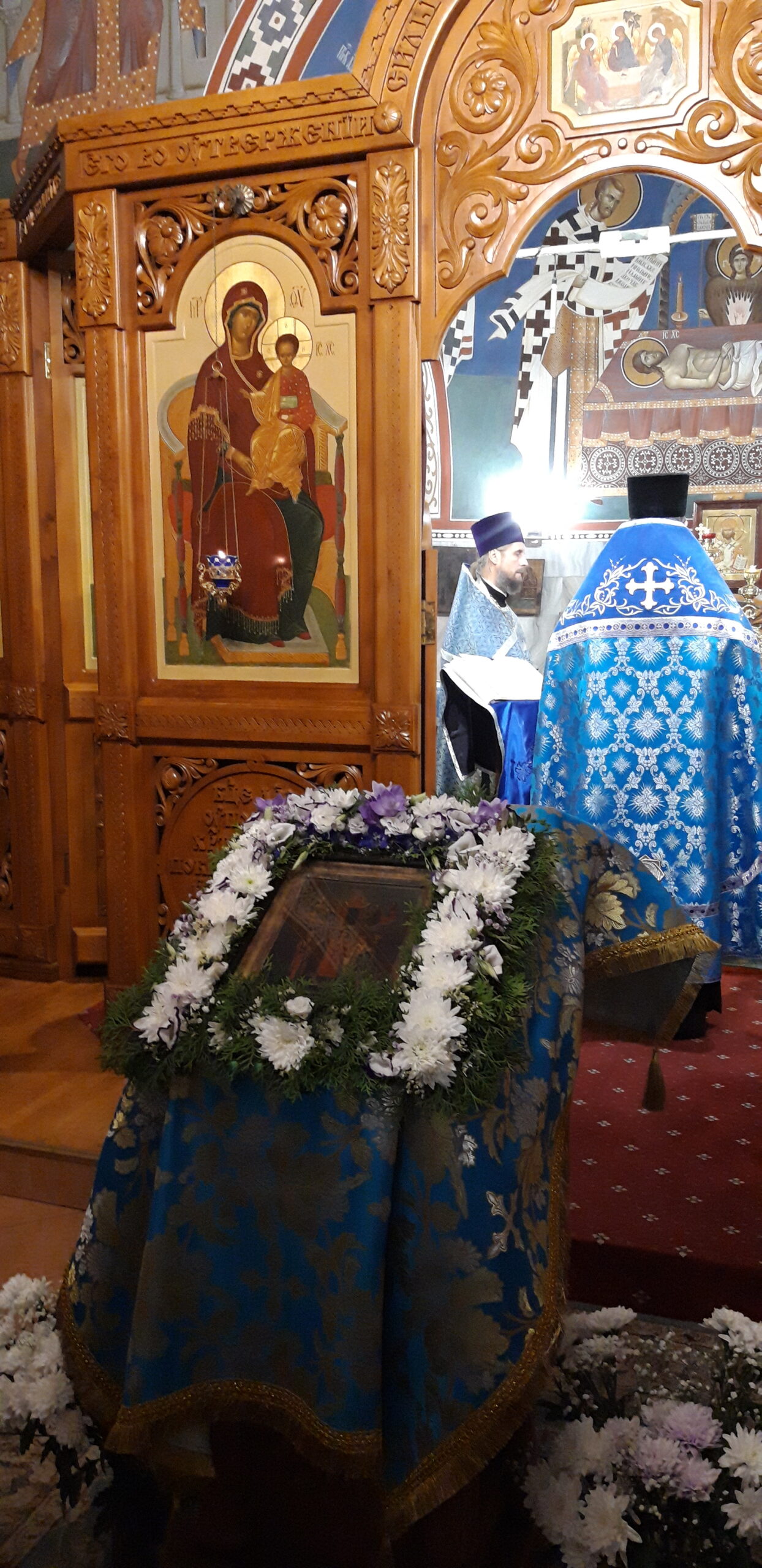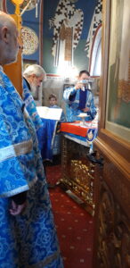 В канун праздника Покрова Пресвятой Владычицы нашей Богородицы и Приснодевы Марии, 13 октября, в храме святого праведного Иоанна Кронштадтского на Кронштадтской площади Всенощное бдение совершил настоятель храма протоиерей Михаил Подолей. Ему сослужил секретарь Черногорско-Приморской митрополии протоиерей Остоя (Кнежевич) (Сербская Православная Церковь).
