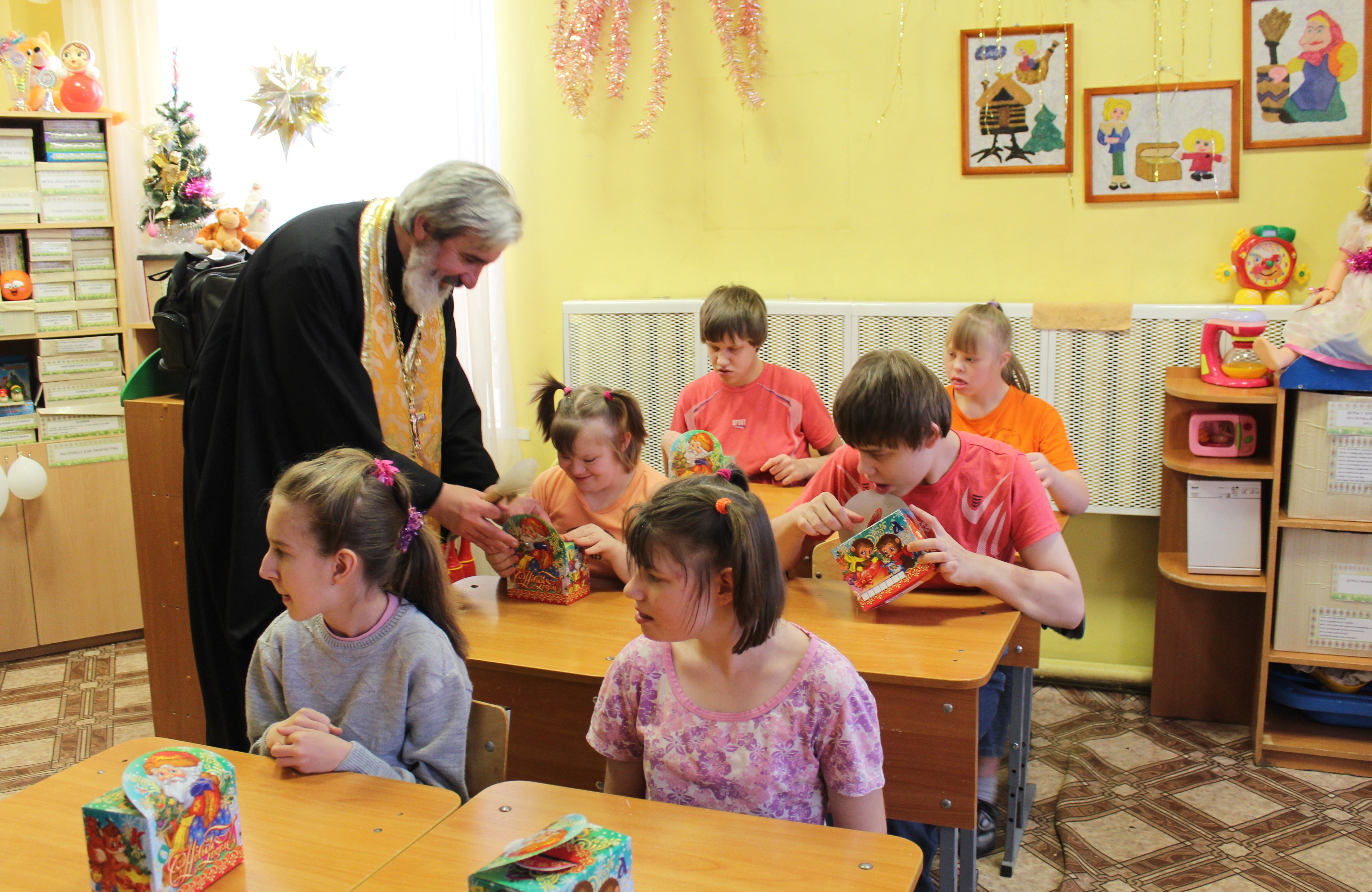 8-го января настоятель и клирики храма св. прав. Иоанна Кронштадтского посетили Дом-интернат для детей с отклонениями в умственном развитии № 2 в Петродворце и поздравили с Рождеством Христовым его воспитанников.