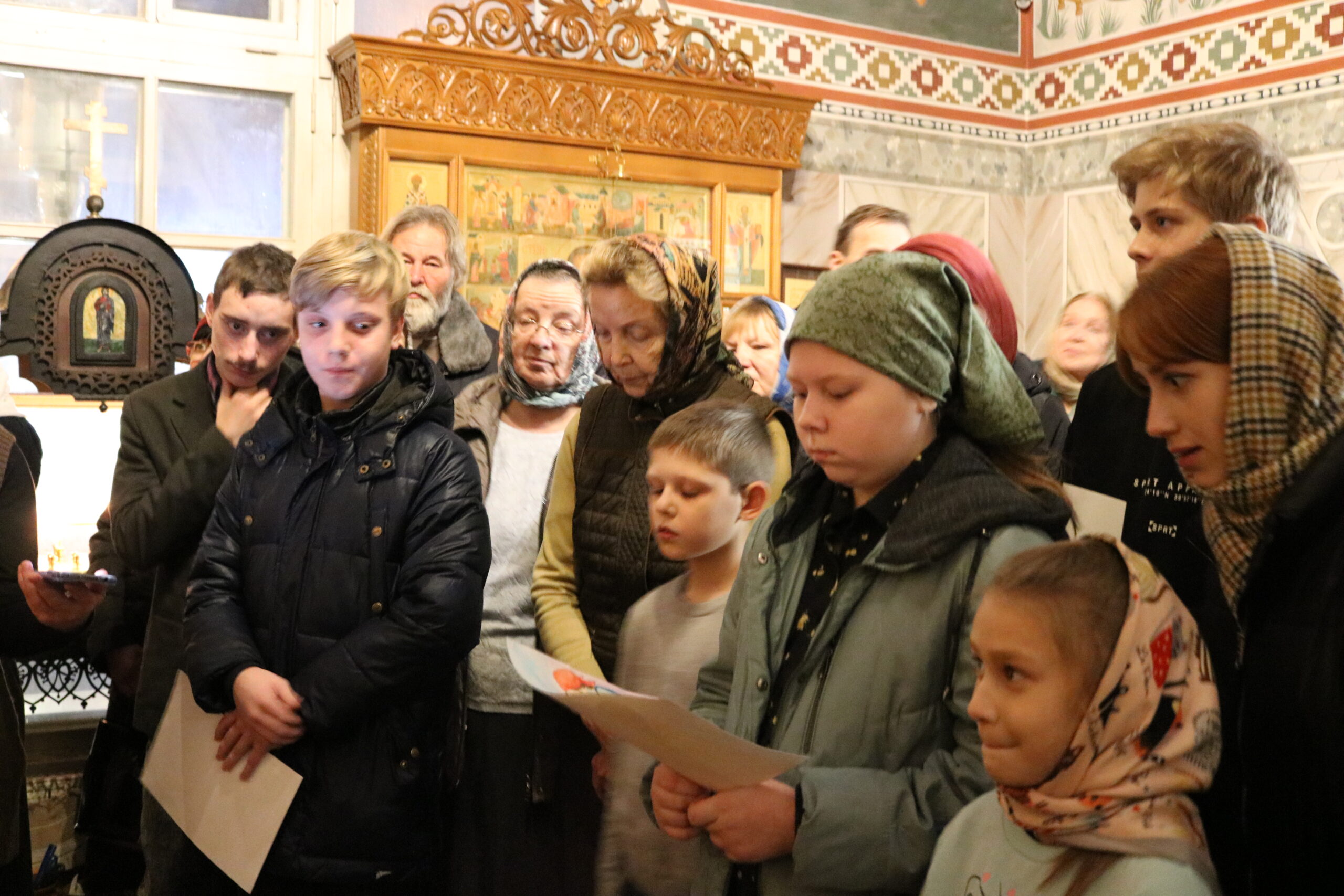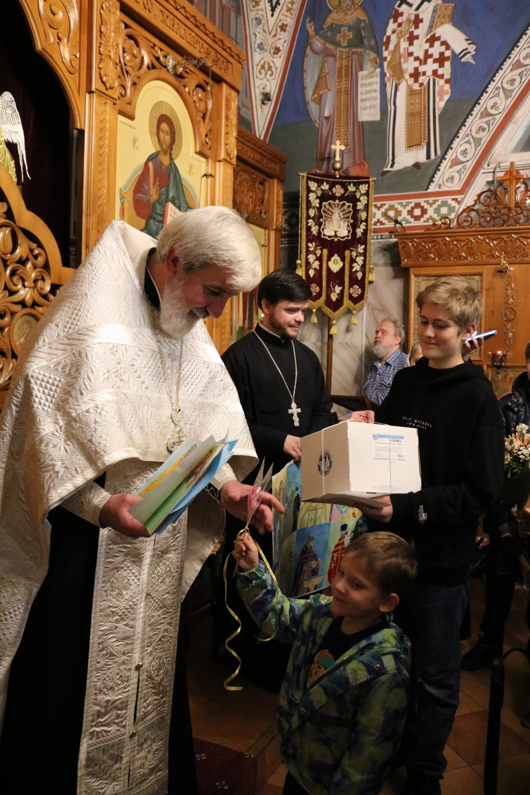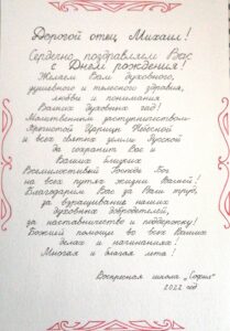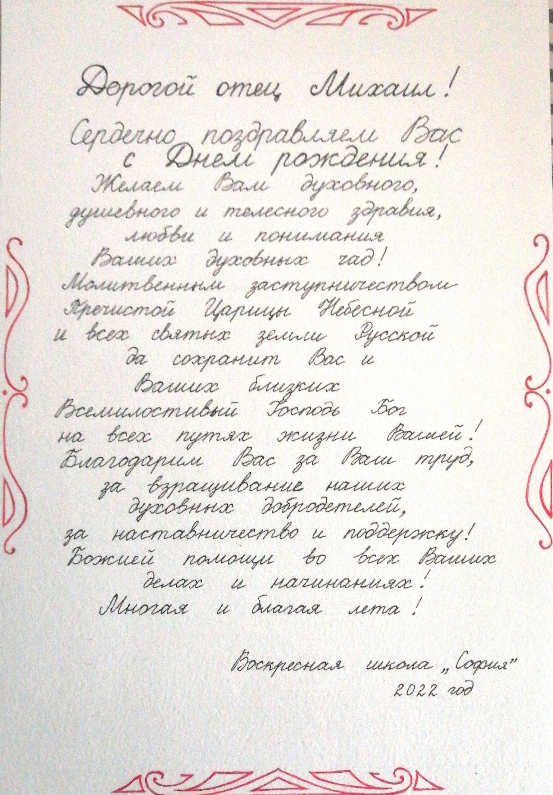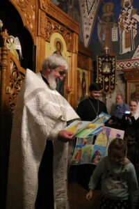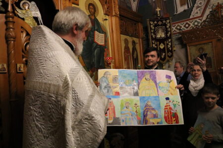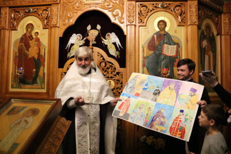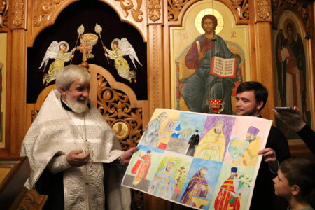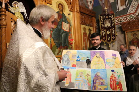 Воспитанники воскресной школы поздравляют настоятеля храма