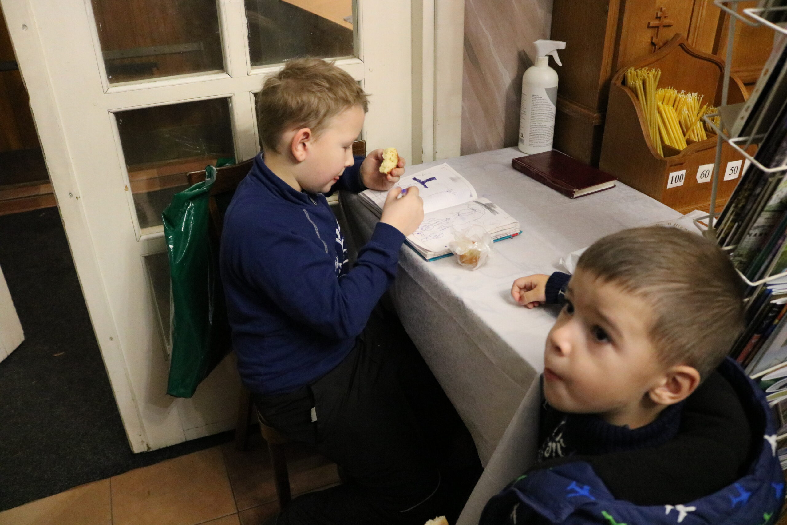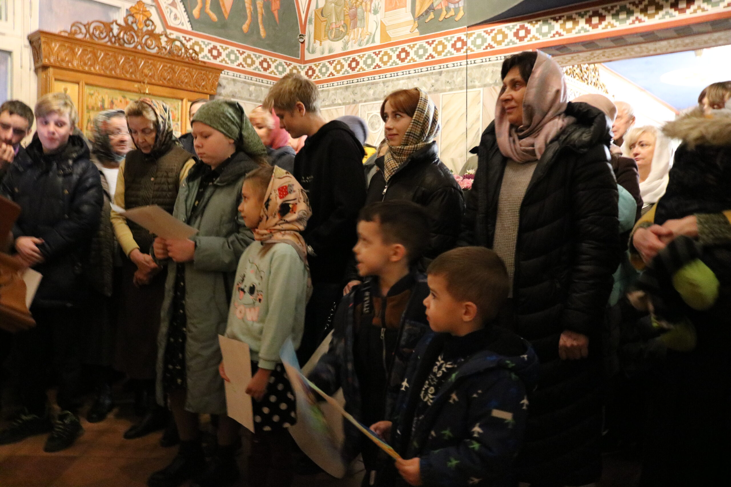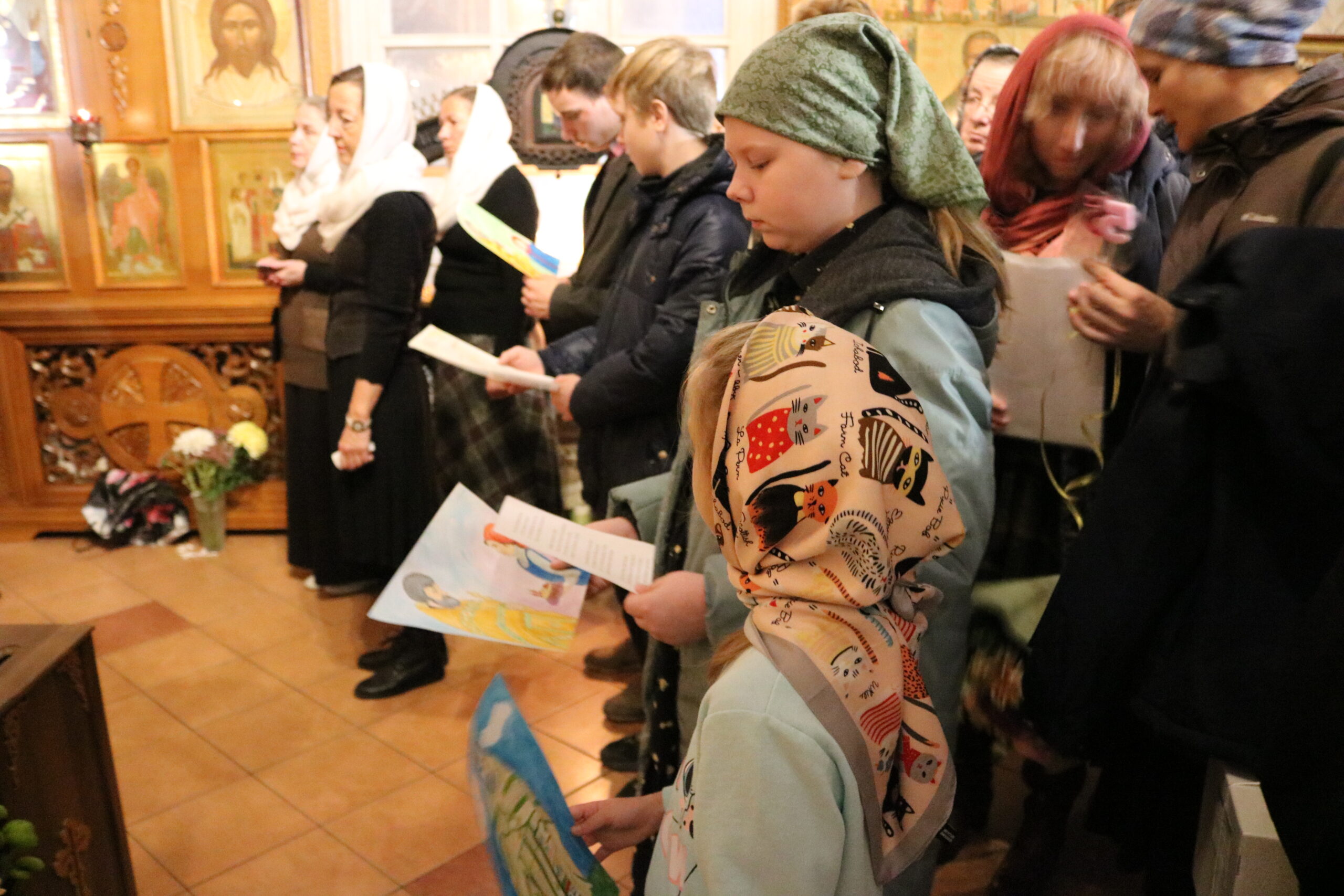 Воспитанники воскресной школы поздравляют настоятеля храма