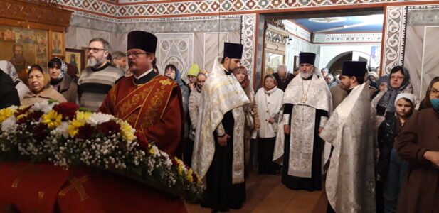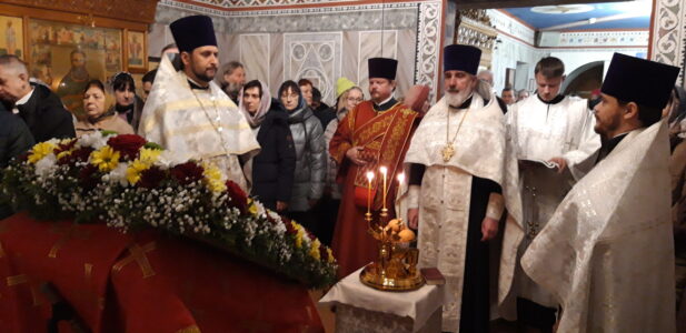 20 ноября 2022 года накануне праздника Собора Архистратига Михаила и прочих Небесных Сил бесплотных Всенощное бдение с чтением акафиста Архистратигу Божию Михаилу в храме святого праведного Иоанна Кронштадтского на Кронштадтской площади совершил настоятель храма протоиерей Михаил Подолей. Его Высокопреподобию сослужили протодиакон Андрей Левин и клирики храма.