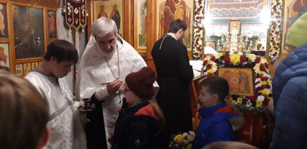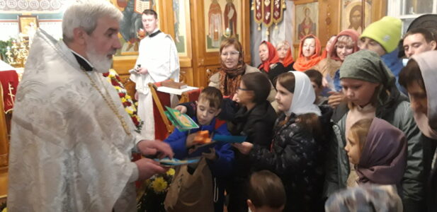 Во время богослужения воспитанники воскресной школы «София» поздравили настоятеля храма, отца Михаила, с Днем его тезоименитства.