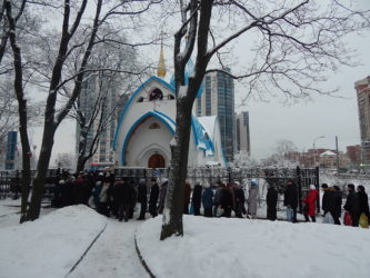 19 января — Божественная литургия. По заамвонной молитве было совершено Великое освящение воды.