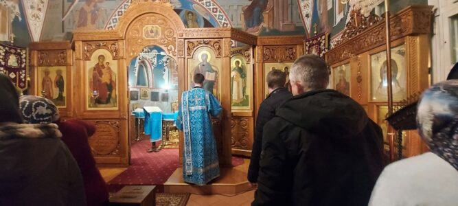 Божественную литургию в день Введения в храм Пресвятой Владычицы нашей Богородицы и Приснодевы Марии совершил настоятель храма святого праведного Иоанна Кронштадтского на Кронштадтской площади протоиерей Михаил Подолей.