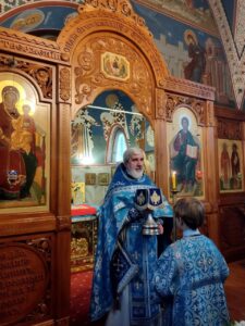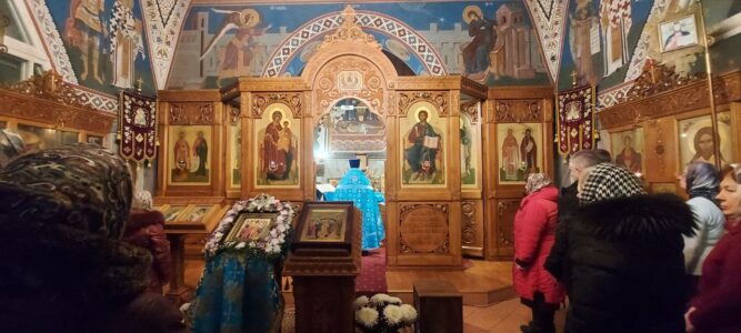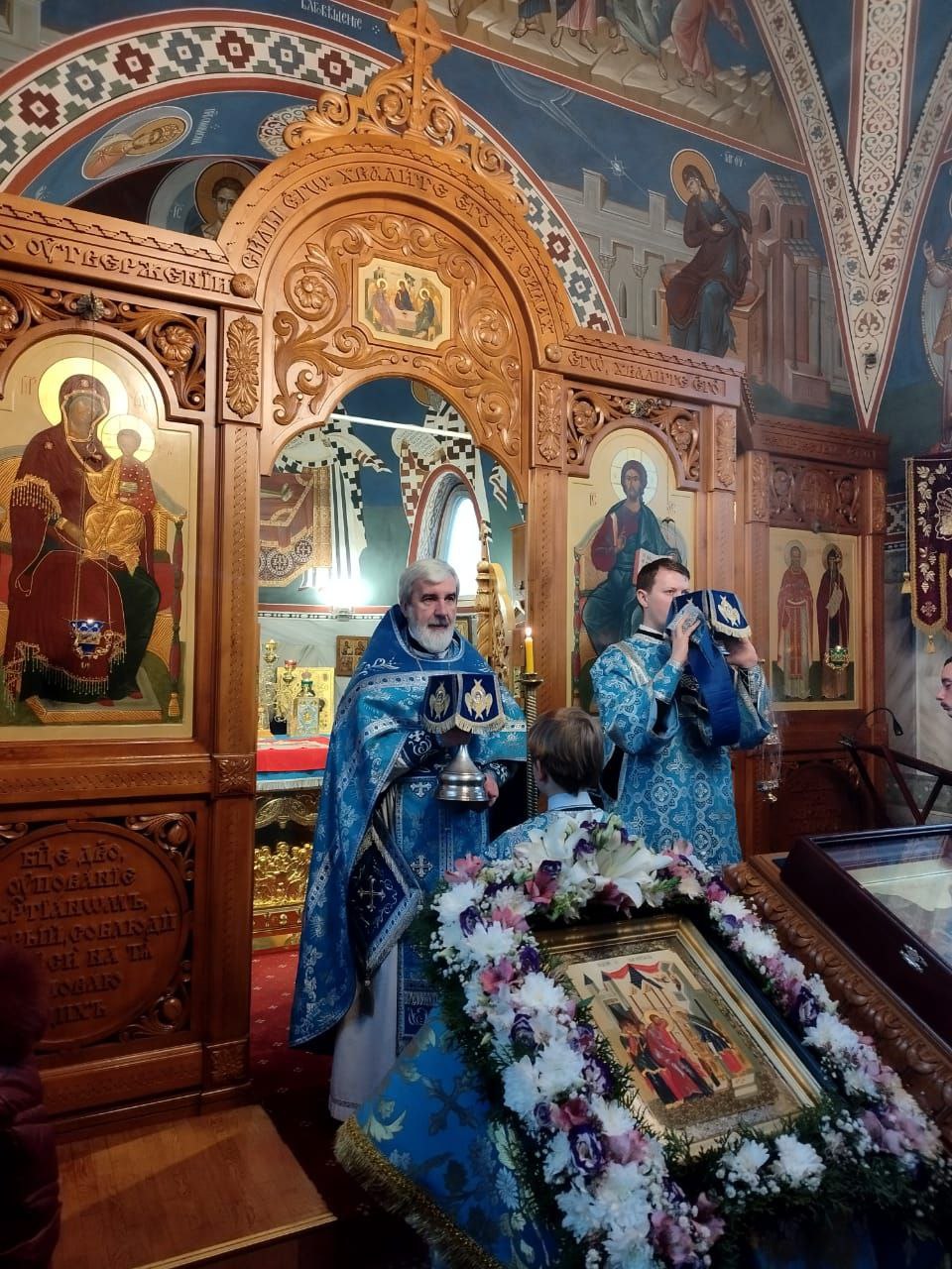 Накануне праздника Всенощное бдение в храме святого праведного Иоанна Кронштадтского на Кронштадтской площади совершил иерей Константин Подолей.
