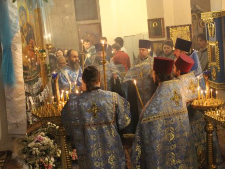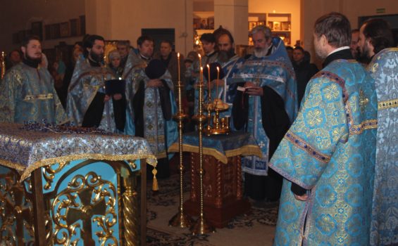 24 января, накануне праздника иконы Божией Матери «Млекопитательница», благочинный Красносельского благочиннического округа и настоятель храма св. прав. Иоанна Кронштадтского на Кронштадтской площади прот. Михаил Подолей возглавил Всенощное бдение по случаю престольного праздника в нижнем храме строящегося храма Преображения Господня в Лигово.