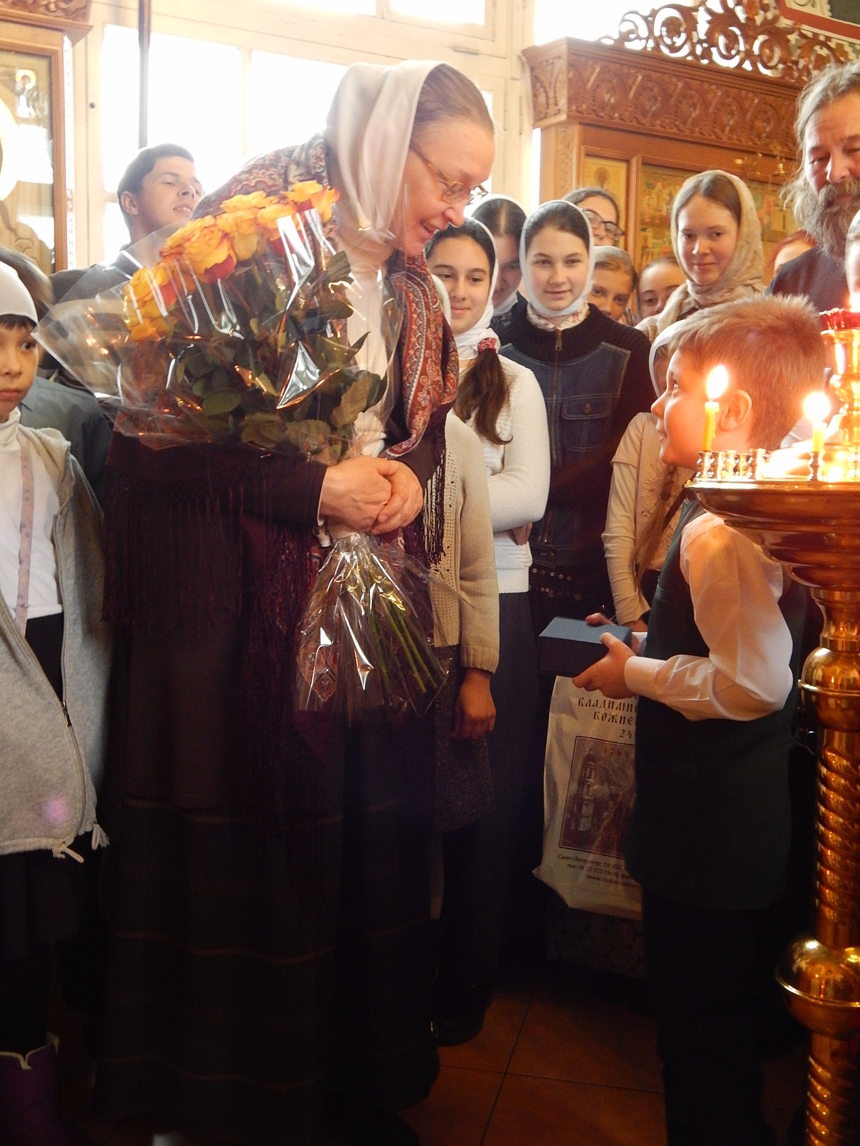 О. Михаил поблагодарил гостей за то, что они приняли участие в богослужении. Особо он отметил пение Детско-юношеского хора под управлением Ирины Валентиновны Болдышевой, благодаря которому сегодняшний день стал настоящим торжеством.