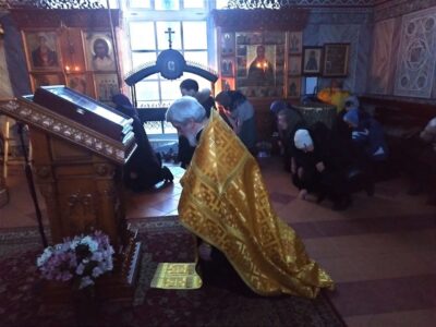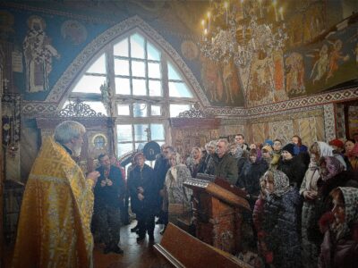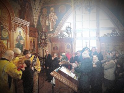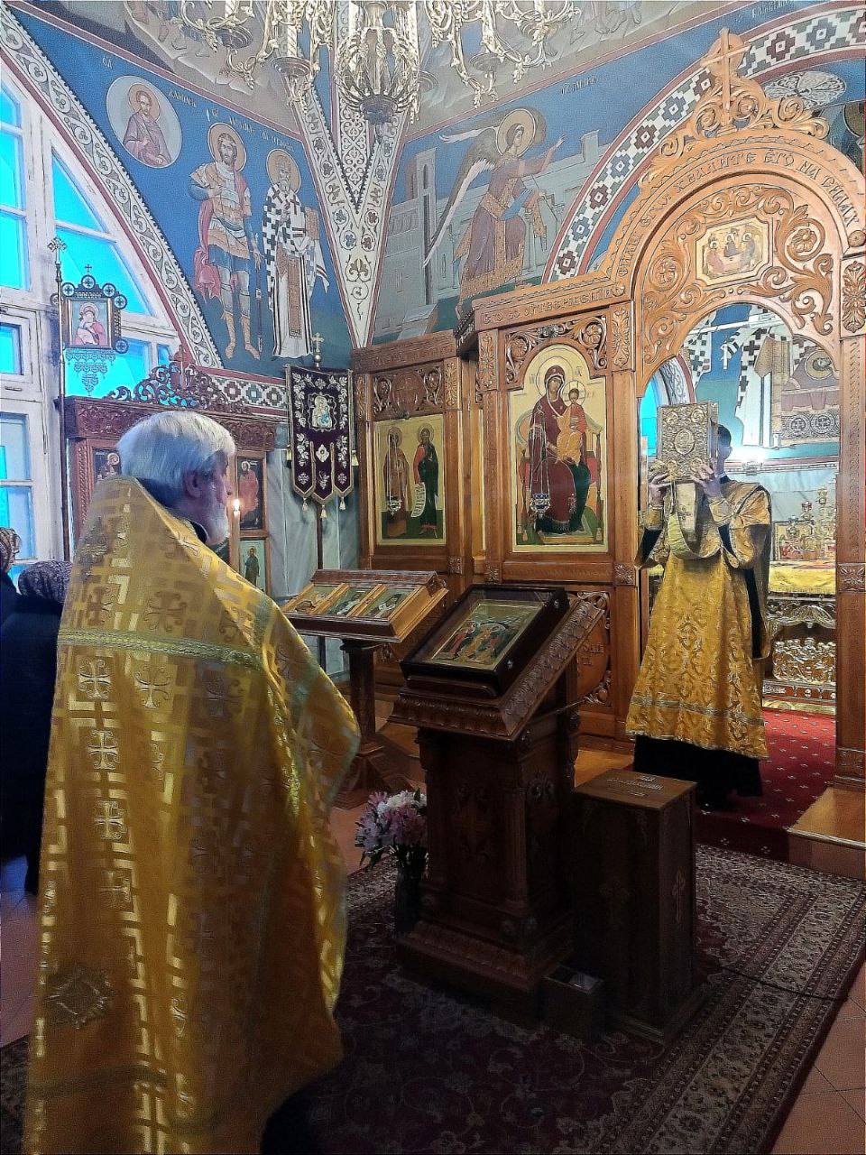 26 февраля 2023 года, в Неделю сыропустную, воспоминание Адамова изгнания, Прощеное воскресенье в храме святого праведного Иоанна Кронштадтского на Кронштадтской площади Божественную литургию совершил настоятель храма протоиерей Михаил Подолей в сослужении клира.