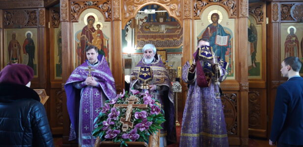 19 марта 2023 года в Неделю 3-ю Великого поста, Крестопоклонную, Божественную литургию в храме святого праведного Иоанна Кронштадтского на Кронштадтской площади совершил настоятель храма протоиерей Михаил Подолей в сослужении клира.