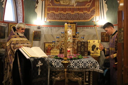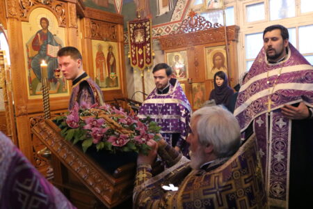 18 марта, в канун Недели 3-й Великого поста, Крестопоклонной, Всенощное бдение в храме святого праведного Иоанна Кронштадтского на Кронштадтской площади совершил настоятель храма протоиерей Михаил Подолей в сослужении клира.