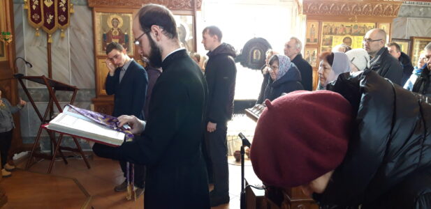 2 апреля 2023 года, в Неделю 5-ю Великого поста, преподобной Марии Египетской, в храме святого праведного Иоанна Кронштадтского на Кронштадтской площади Божественную литургию совершил настоятель храма протоиерей Михаил Подолей в сослужении клира.