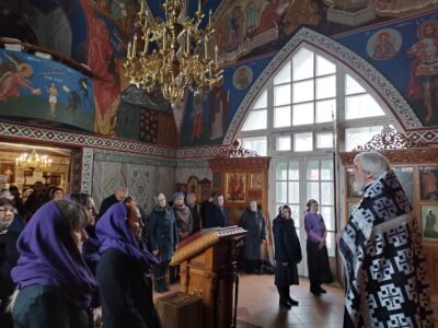 Вечером 2 апреля 2023 года, в Неделю 5-ю Великого поста, в храме святого праведного Иоанна Кронштадтского на Кронштадтской площади настоятель храма протоиерей Михаил Подолей совершил вечернее богослужение с Чином Пассии.