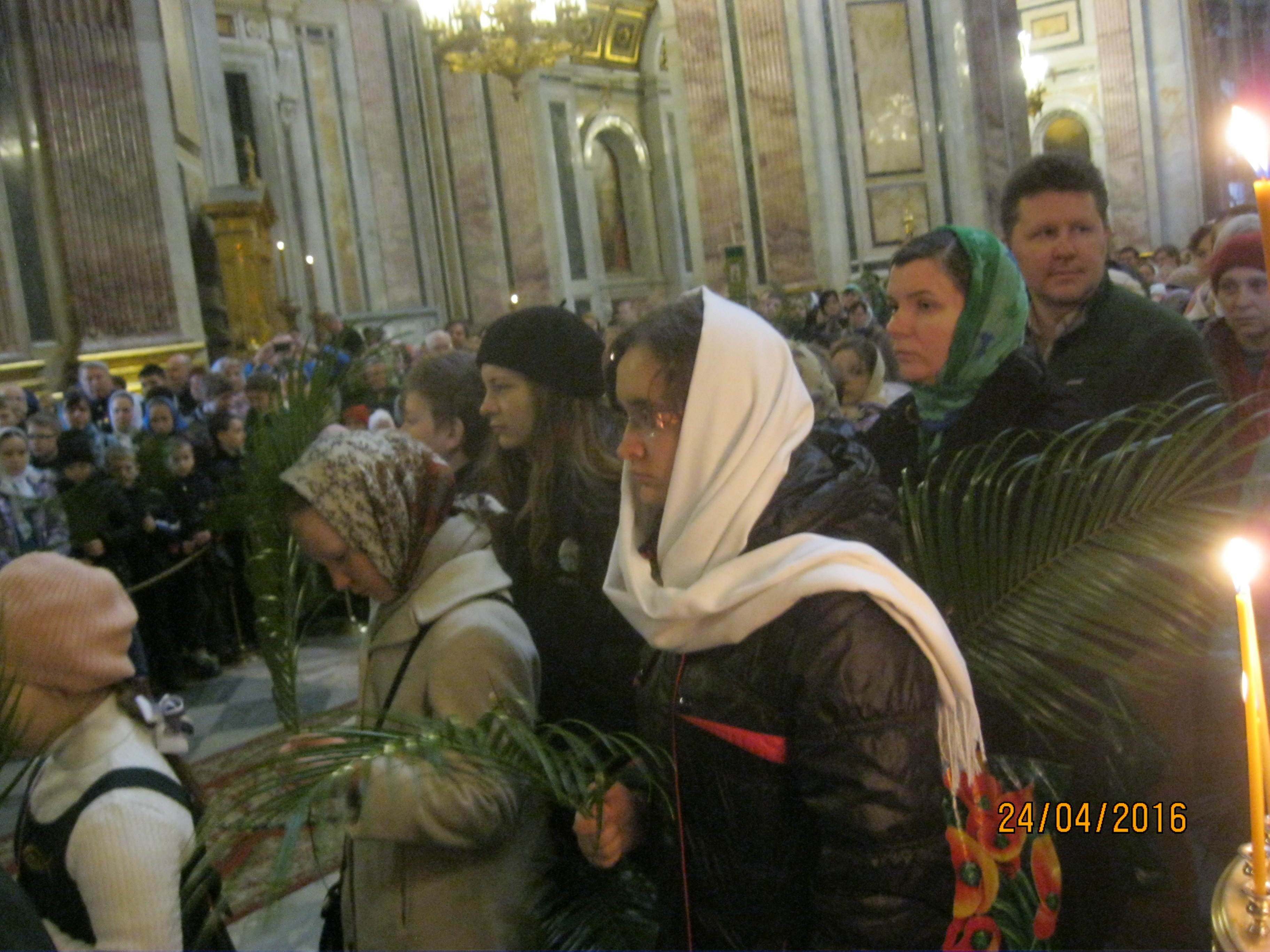 В храме святого праведного Иоанна Кронштадтского на Кронштадтской площади вечером накануне праздника было свершено Всенощное бдение с чином освящения ваий — в воспоминание о том, что жители Иерусалима встречали Спасителя с пальмовыми ветвями в руках.
