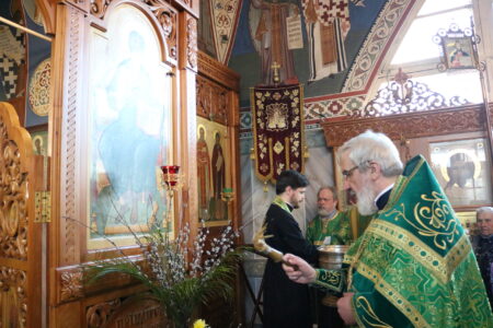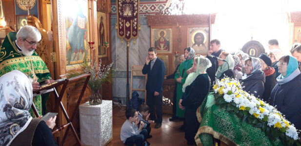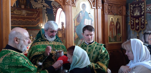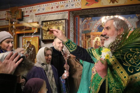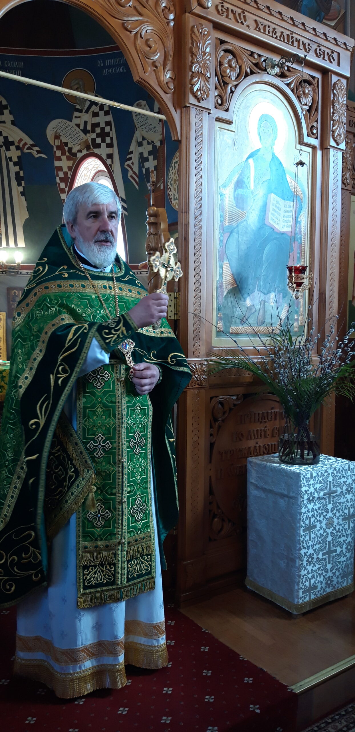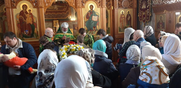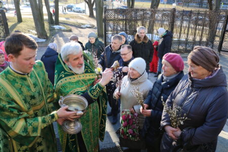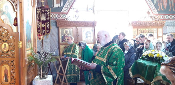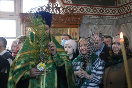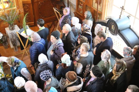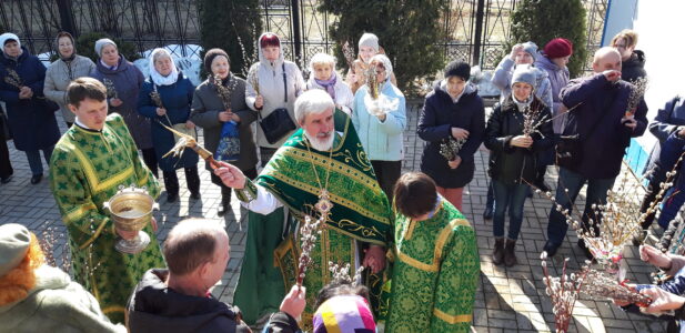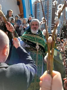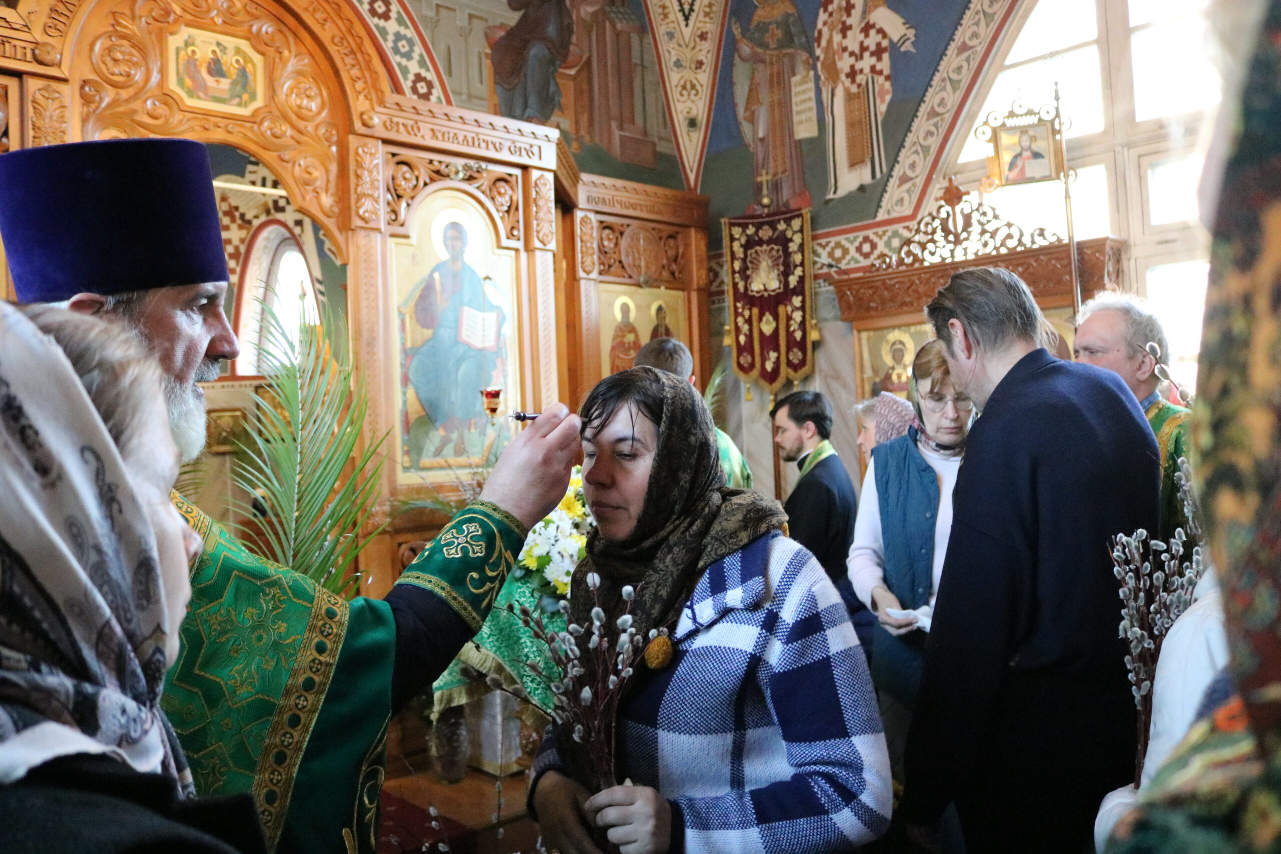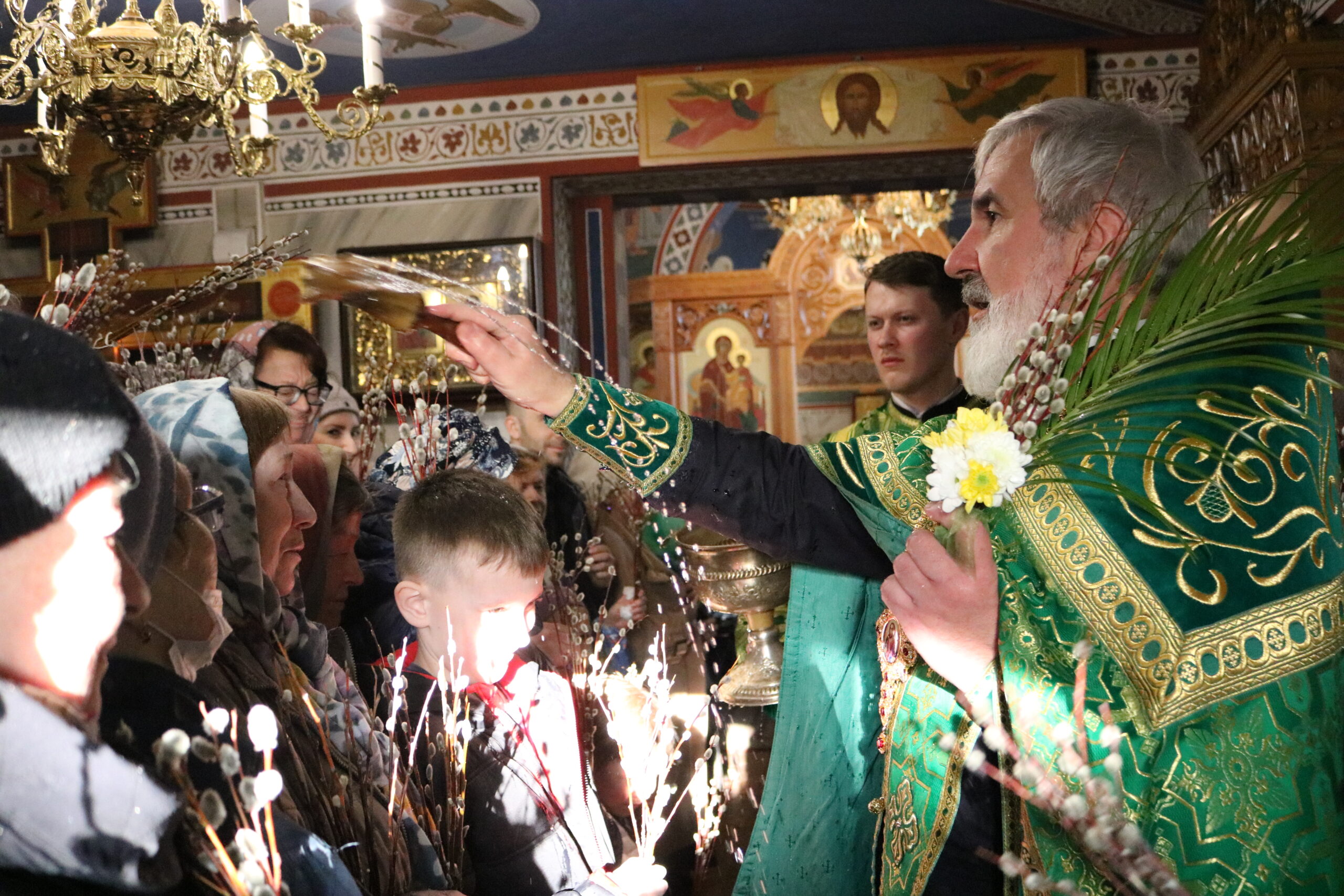 9 апреля 2023 года, в праздник Входа Господня в Иерусалим (Вербное воскресенье), в храме святого праведного Иоанна Кронштадтского на Кронштадтской площади Божественную литургию совершил настоятель храма протоиерей Михаил Подолей в сослужении клира.