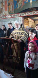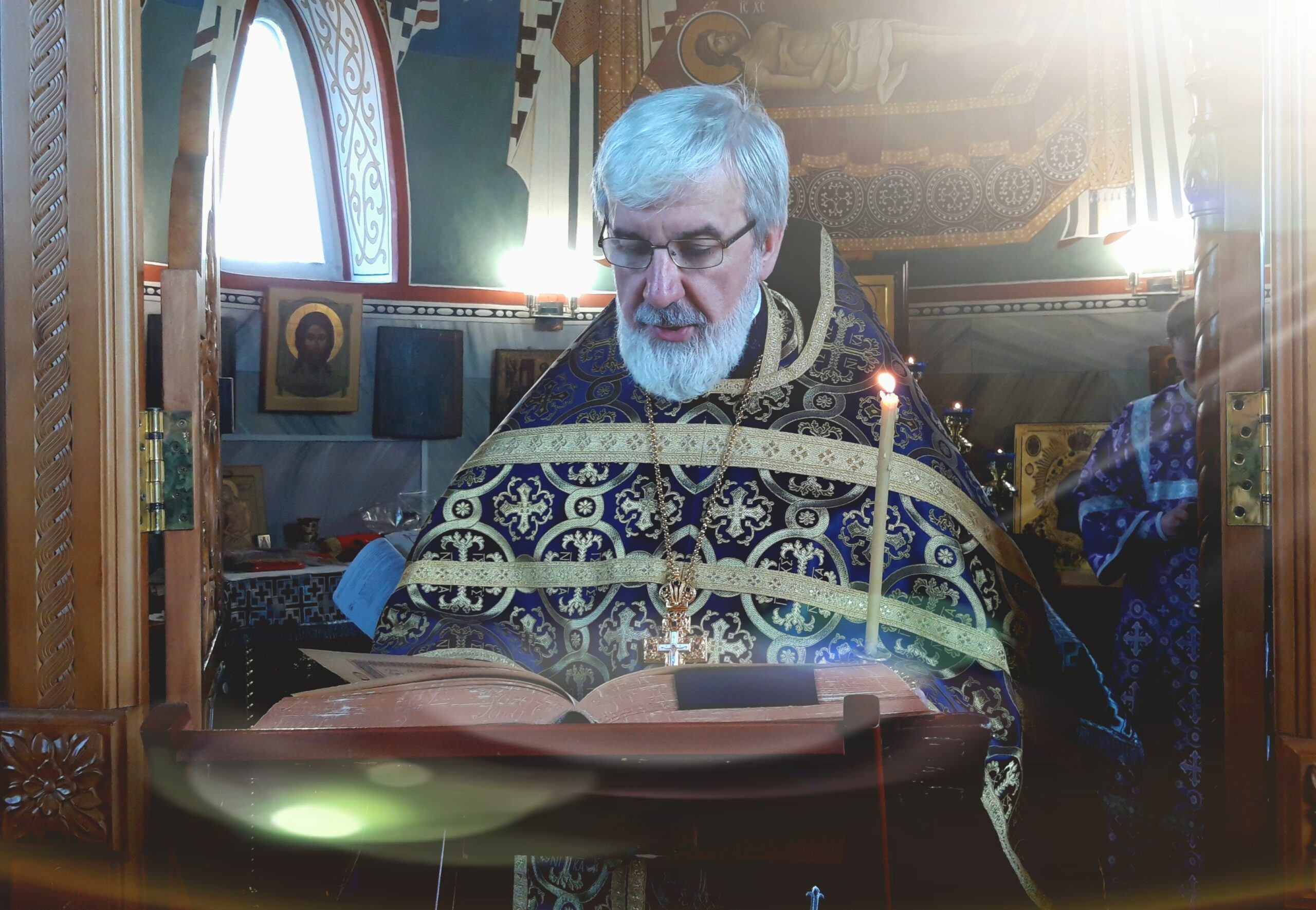 Вечером 12 апреля 2023 года, в канун Великого Четвертка, в храме святого праведного Иоанна Кронштадтского на Кронштадтской площади уставное богослужение — утреню — совершил настоятель храма протоиерей Михаил Подолей.