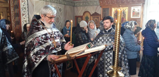 13 апреля 2023 года, в канун Великой Пятницы, в храме святого праведного Иоанна Кронштадтского на Кронштадтской площади утреню с чтением 12-ти Евангелий Святых Страстей Господа нашего Иисуса Христа совершил настоятель храма протоиерей Михаил Подолей в сослужении клира.