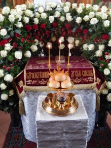По окончании Литургии прошло освящение куличей, пасох и яиц.