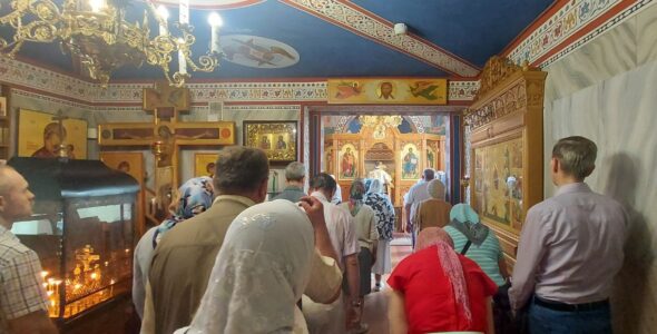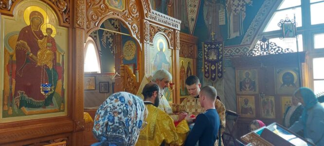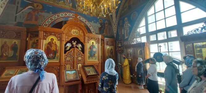 25 июня 2023 года, в Неделю 3-ю по Пятидесятнице, Собор святых Санкт-Петербургской митрополии, Божественную литургию в храме святого праведного Иоанна Кронштадтского на Кронштадтской площади совершил настоятель храма протоиерей Михаил Подолей в сослужении клира.
