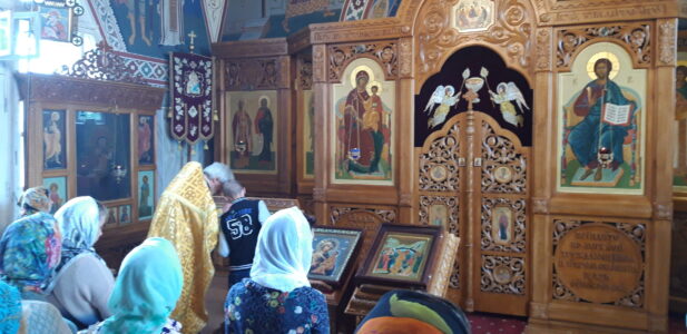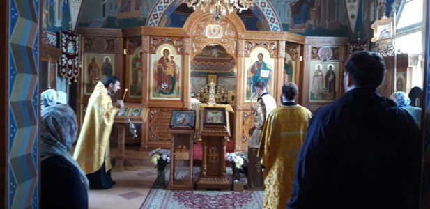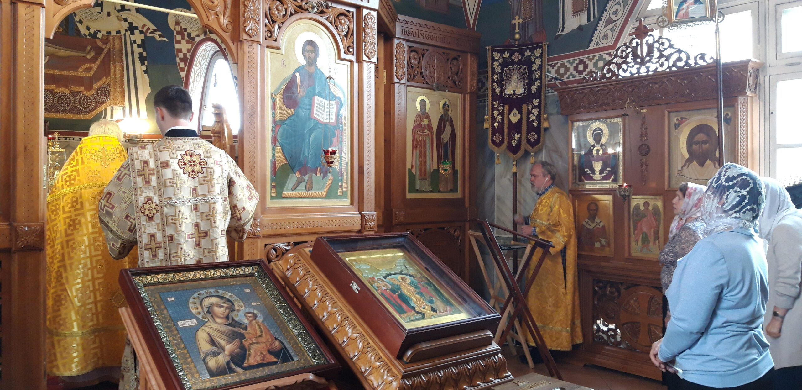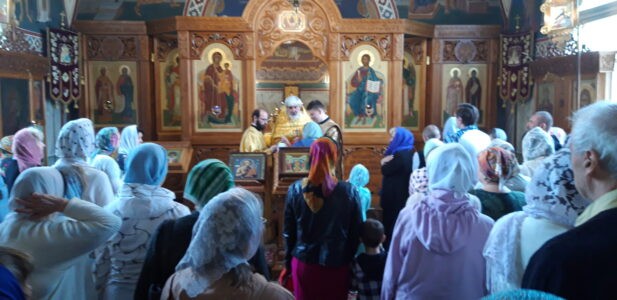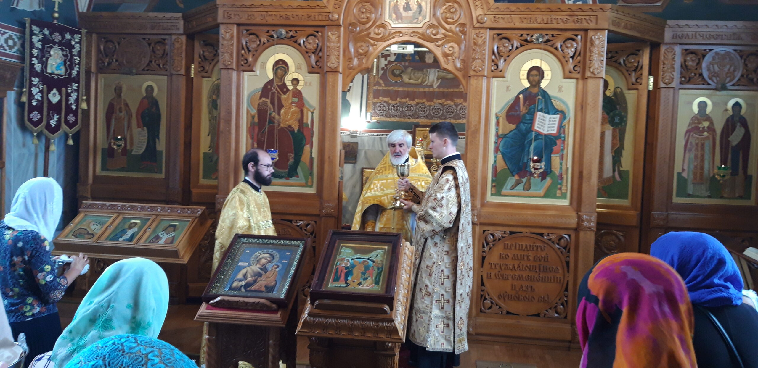 9 июля 2023 года, в Неделю 5-ю по Пятидесятнице, день Тихвинской иконы Божией Матери, Божественную литургию в храме святого праведного Иоанна Кронштадтского на Кронштадтской площади совершил настоятель храма протоирей Михаил Подолей в сослужении клира.