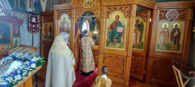 12 июля 2023 года, в день памяти святых апостолов Петра и Павла, Божественную литургию в храме святого праведного Иоанна Кронштадтского на Кронштадтской площади совершил настоятель храма протоиерей Михаил Подолей в сослужении клира.