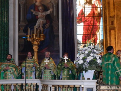 За богослужением пел церковный хор собора под руководством Льва Дунаева.