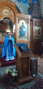 21 июля 2023 года, в праздник Казанской иконы Божией Матери, Божественную литургию в храме святого праведного Иоанна Кронштадтского на Кронштадтской площади совершил иерей Константин Подолей.