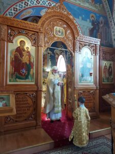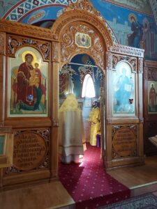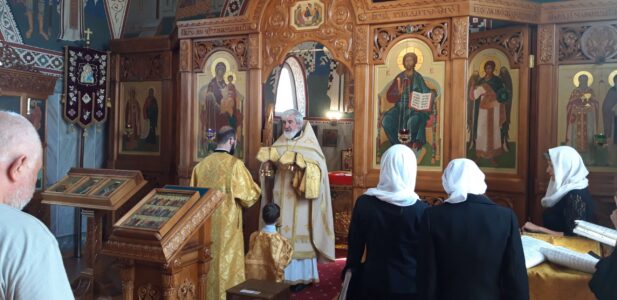 12 августа 2023 года, в субботу седмицы 10-й по Пятидесятнице, Божественную литургию в храме святого праведного Иоанна Кронштадтского на Кронштадтской площади совершил настоятель храма протоиерей Михаил Подолей.