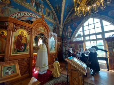За богослужением пел любительский хор прихода храма святого праведного Иоанна Кронштадтского.