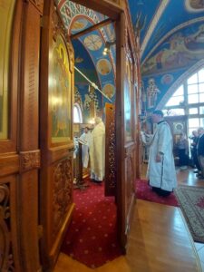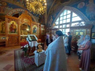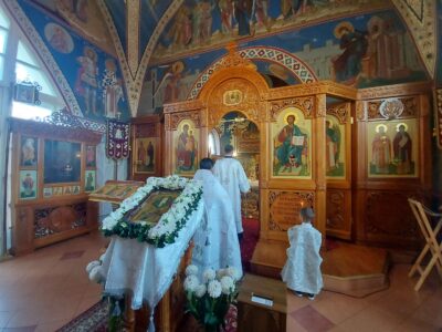 19 августа 2023 года, в праздник Преображения Господа Бога и Спаса нашего Иисуса Христа, Божественную литургию в храме святого праведного Иоанна Кронштадтского на Кронштадтской площади совершил настоятель храма протоиерей Михаил Подолей в сослужении клира.