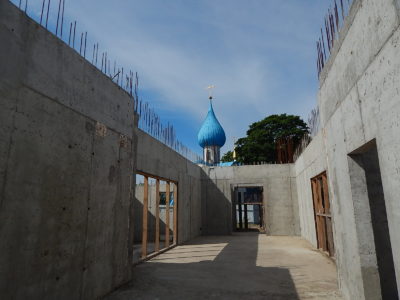 За два года строительства здесь уже многое изменилось: там, где торчала арматура, выросли стены первого этажа. Божией милостью продолжится и дальнейшее строительство. Но не будем забывать, что беспечность с нашей стороны в этом деле недопустима. Мы должны проявить усердие в возведении храма. Ради этого надо полагать свою жизнь, терпеливо трудиться и со смирением ждать милости Божией к нам. Тогда Господь, видя наше смирение и наши труды, Сам украсит и исправит то, что создали мы своей немощью.