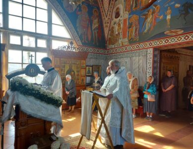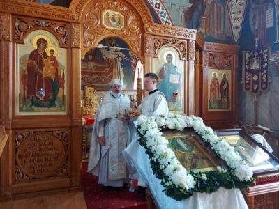 20 августа 2023 года, в Неделю 11-ю по Пятидесятнице, попразднство Преображения Господня, Божественную литургию в храме святого праведного Иоанна Кронштадтского на Кронштадтской площади совершил настоятель храма протоиерей Михаил Подолей в сослужении клира.